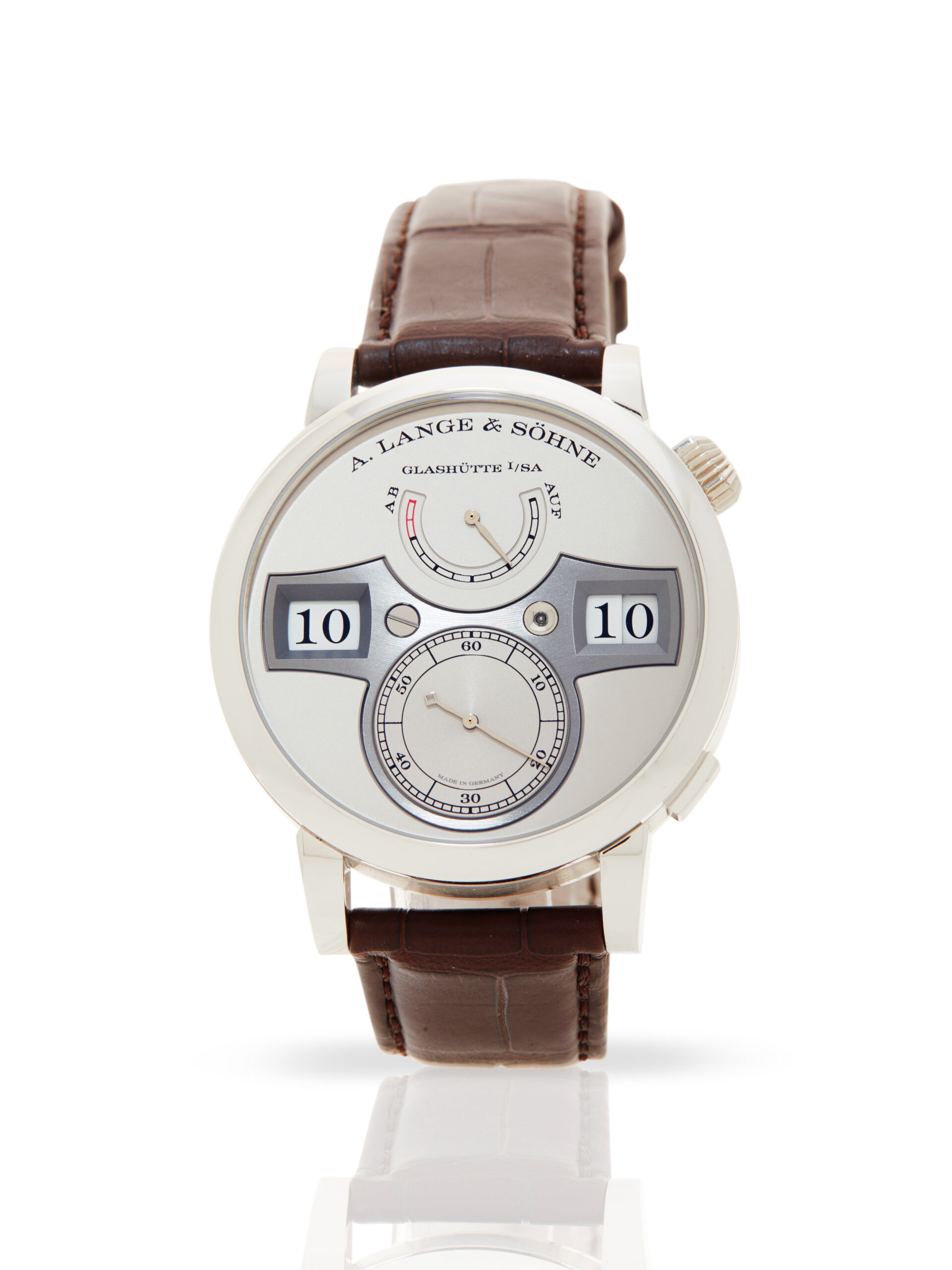 This A. Lange and Sohne Zeitwerk 142.025 has a rhodium dial and a leather strap. This A. Lange and Sohne has undergone a thorough inspection of water resistance, accuracy, functionality and condition to determine the level of reconditioning required to meet our strict standards. It has also been referenced against technical documents and manufacturer records where available to ensure authenticity and a clean history. Our watches have a 24-month warranty for your peace of mind, in conjunction with any remaining manufacturer’s warranty from new or from service.