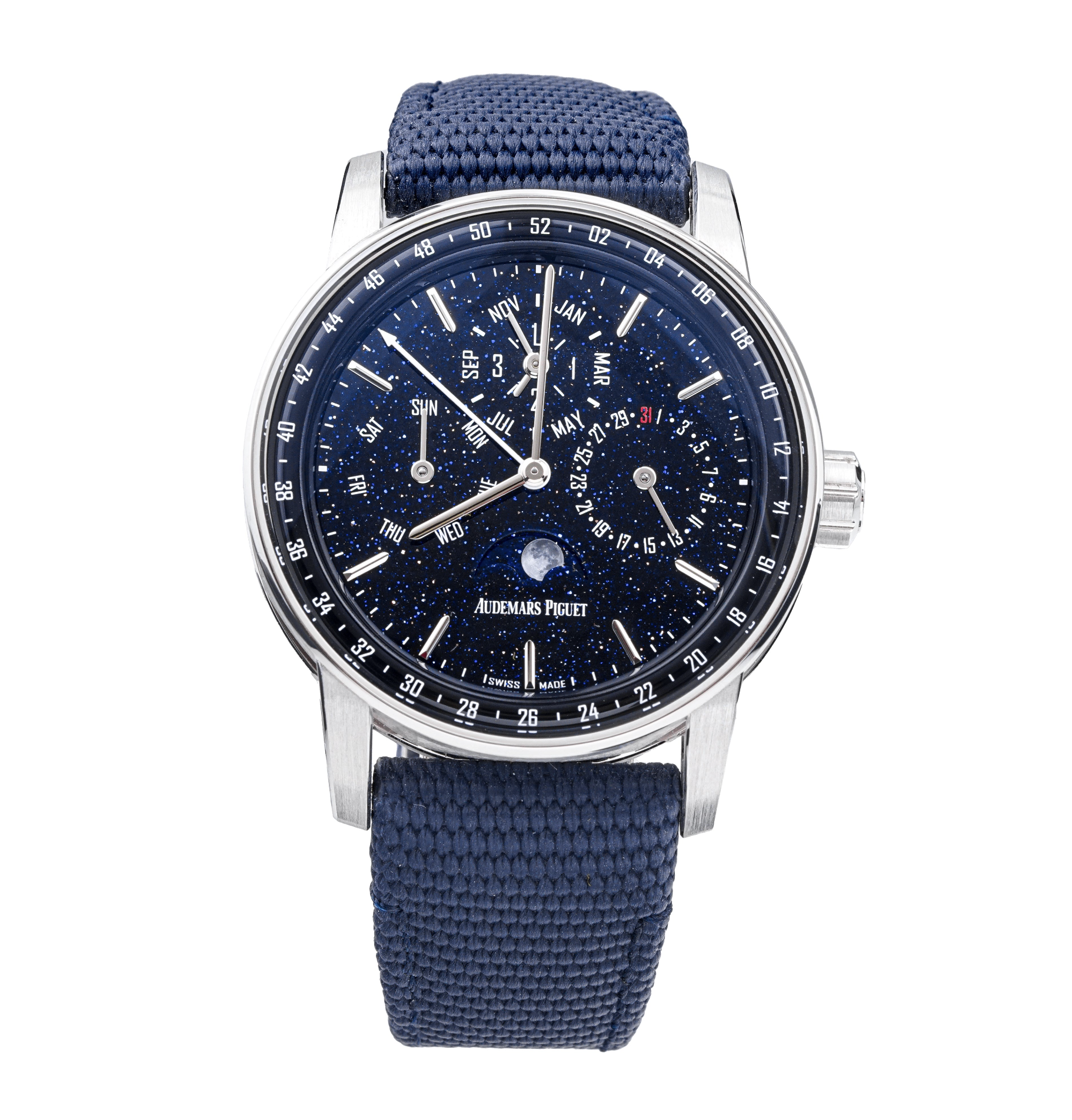 This Audemars Piguet CODE 11.59 26394BC.OO.D027KB.01 has a blue dial and a rubber strap. This Audemars Piguet has undergone a thorough inspection of accuracy, functionality and condition at our Audemars Piguet certified service centre to determine the level of reconditioning required to meet our strict standards. It has also been checked against our records to ensure authenticity. Our watches have a 24-month warranty for your peace of mind, in conjunction with any remaining manufacturer’s warranty from new or from service.