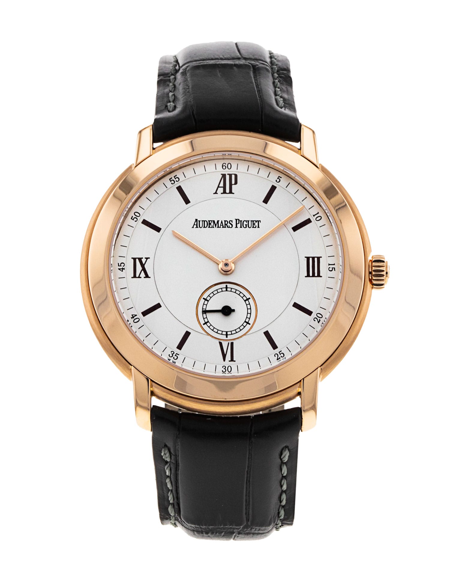 This Audemars Piguet Jules Audemars 15056OR/O/0067CR/01 has a white baton dial and a leather strap. This Audemars Piguet has undergone a thorough inspection of accuracy, functionality and condition at our Audemars Piguet certified service centre to determine the level of reconditioning required to meet our strict standards. It has also been checked against our records to ensure authenticity. Our watches have a 24-month warranty for your peace of mind, in conjunction with any remaining manufacturer’s warranty from new or from service.