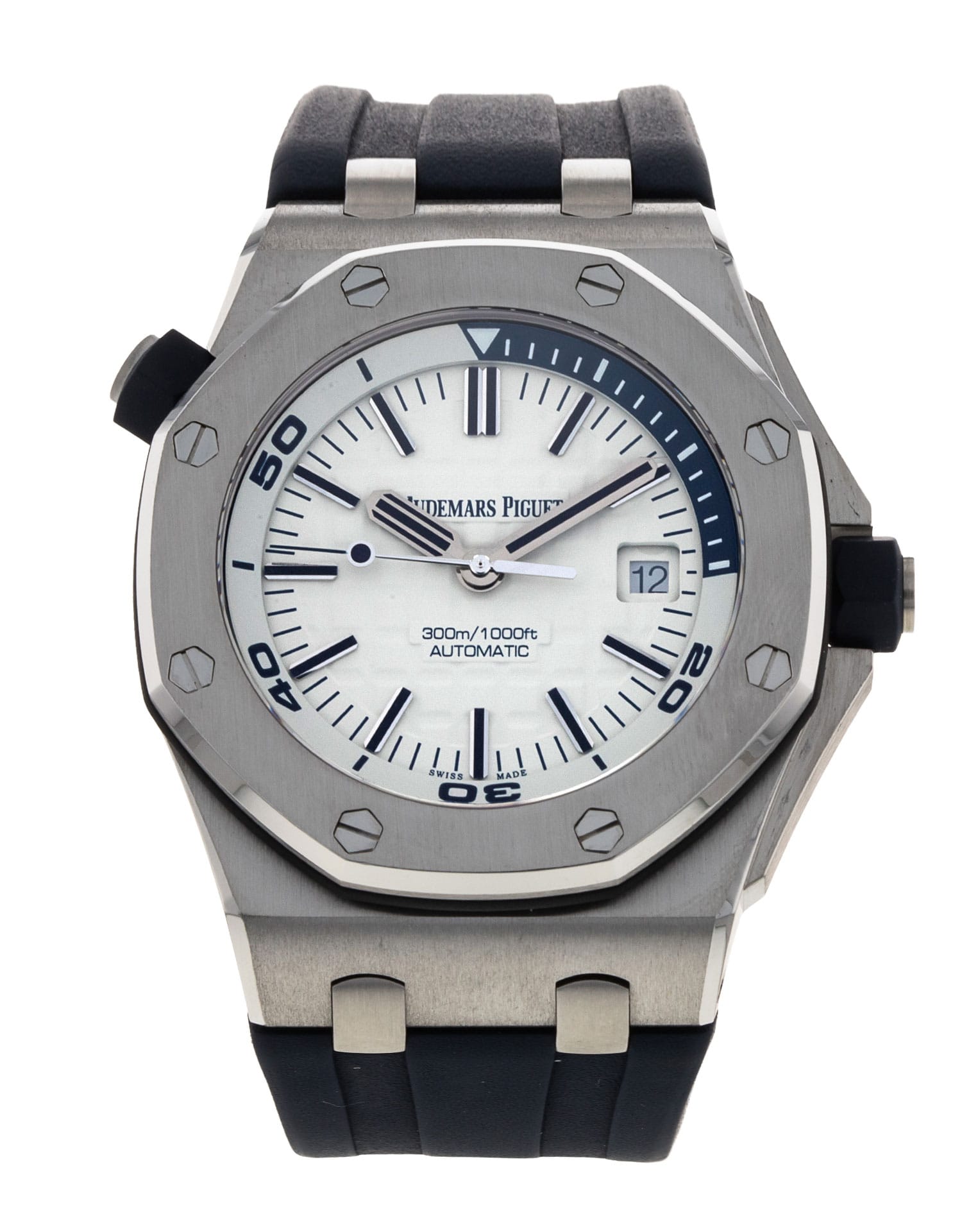 This Audemars Piguet Royal Oak Offshore 15710ST.OO.A010CA.01 has a white dial and a rubber strap. This Audemars Piguet has undergone a thorough inspection of accuracy, functionality and condition at our Audemars Piguet certified service centre to determine the level of reconditioning required to meet our strict standards. It has also been checked against our records to ensure authenticity. All our watches have a 24-month warranty for your peace of mind.