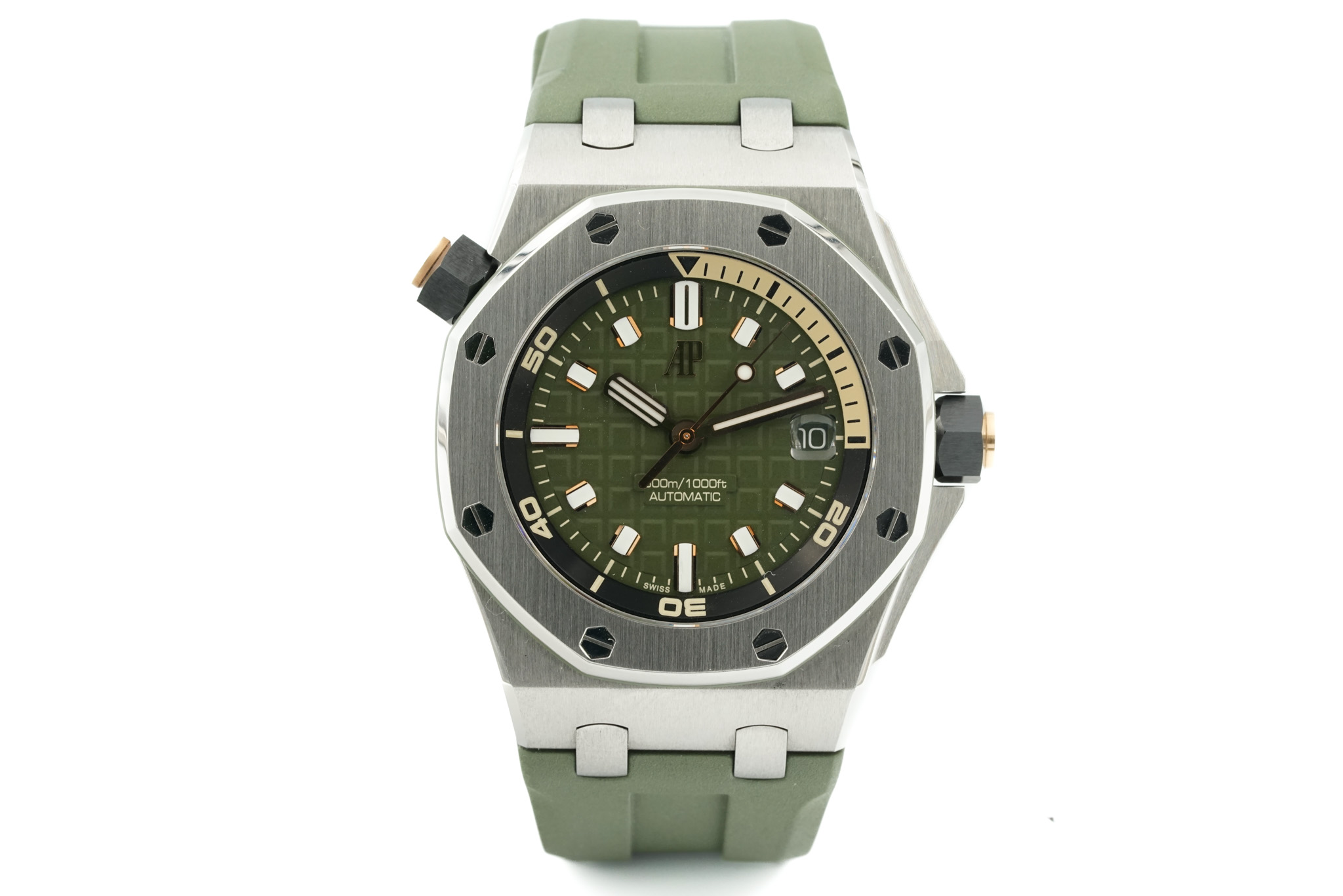 This Audemars Piguet Royal Oak Offshore 15720ST.OO.A052CA.01 has a green dial and a rubber strap. This Audemars Piguet has undergone a thorough inspection of accuracy, functionality and condition at our Audemars Piguet certified service centre to determine the level of reconditioning required to meet our strict standards. It has also been checked against our records to ensure authenticity. Our watches have a 24-month warranty for your peace of mind, in conjunction with any remaining manufacturer’s warranty from new or from service.