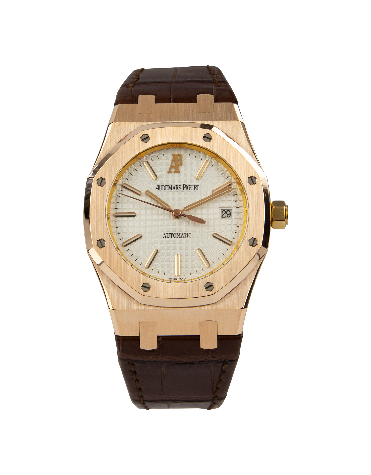 This Audemars Piguet Royal Oak 15300OR.OO.D088CR.02 has a white baton dial and a leather strap. This Audemars Piguet has undergone a thorough inspection of accuracy, functionality and condition at our Audemars Piguet certified service centre to determine the level of reconditioning required to meet our strict standards. It has also been checked against our records to ensure authenticity. All our watches have a 24-month warranty for your peace of mind.