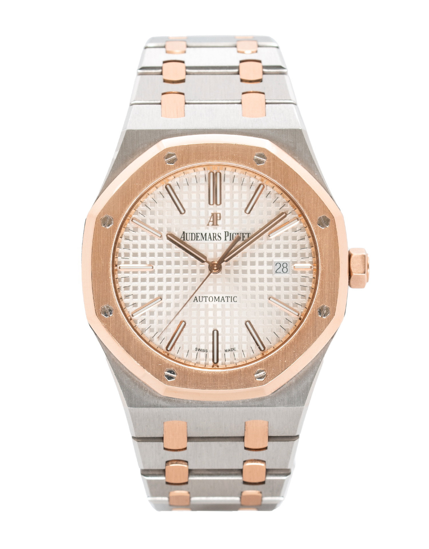 This Audemars Piguet Royal Oak 15400SR.OO.1220SR.01 has a silver baton dial and a bracelet strap. This Audemars Piguet has undergone a thorough inspection of accuracy, functionality and condition at our Audemars Piguet certified service centre to determine the level of reconditioning required to meet our strict standards. It has also been checked against our records to ensure authenticity. All our watches have a 24-month warranty for your peace of mind.