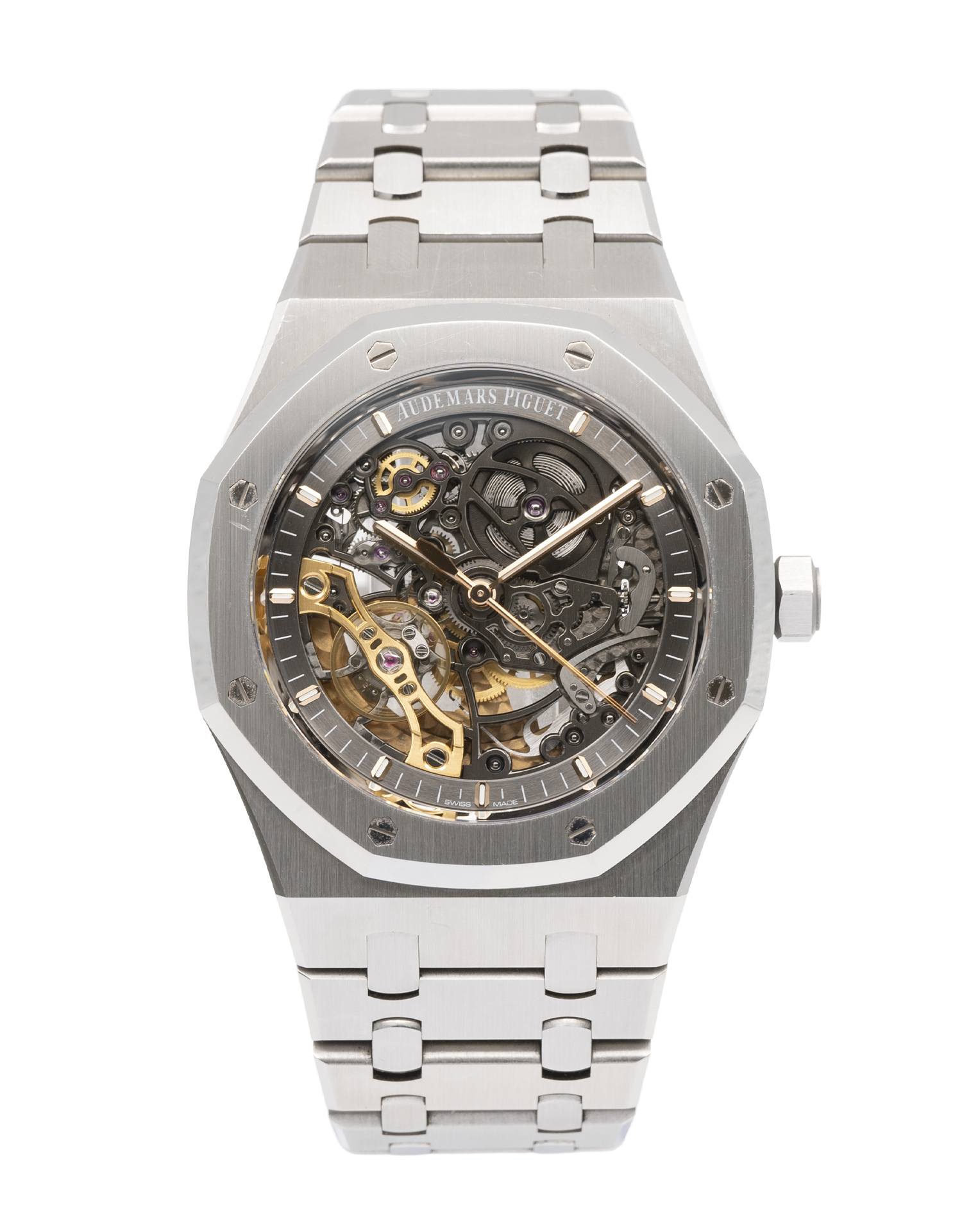 This Audemars Piguet Royal Oak 15407ST.OO.1220ST.01 has a skeleton dial and a bracelet strap. This Audemars Piguet has undergone a thorough inspection of accuracy, functionality and condition at our Audemars Piguet certified service centre to determine the level of reconditioning required to meet our strict standards. It has also been checked against our records to ensure authenticity. All our watches have a 24-month warranty for your peace of mind.