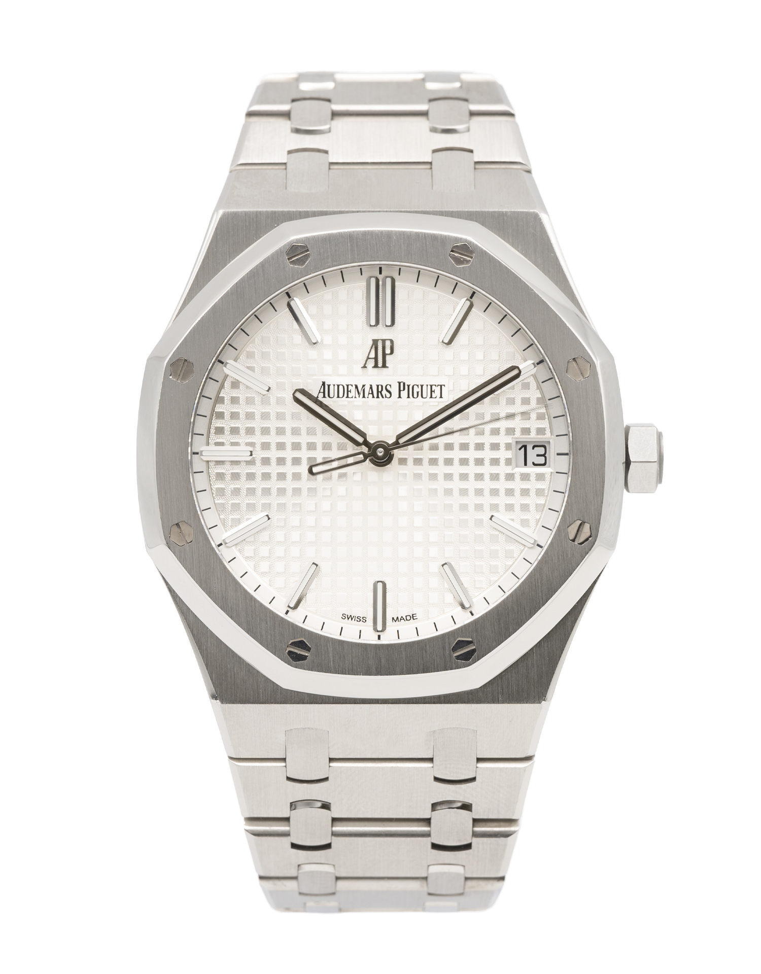 This Audemars Piguet Royal Oak 15500ST.OO.1220ST.04 has a silver baton dial and a bracelet strap. This Audemars Piguet has undergone a thorough inspection of accuracy, functionality and condition at our Audemars Piguet certified service centre to determine the level of reconditioning required to meet our strict standards. It has also been checked against our records to ensure authenticity. All our watches have a 24-month warranty for your peace of mind.