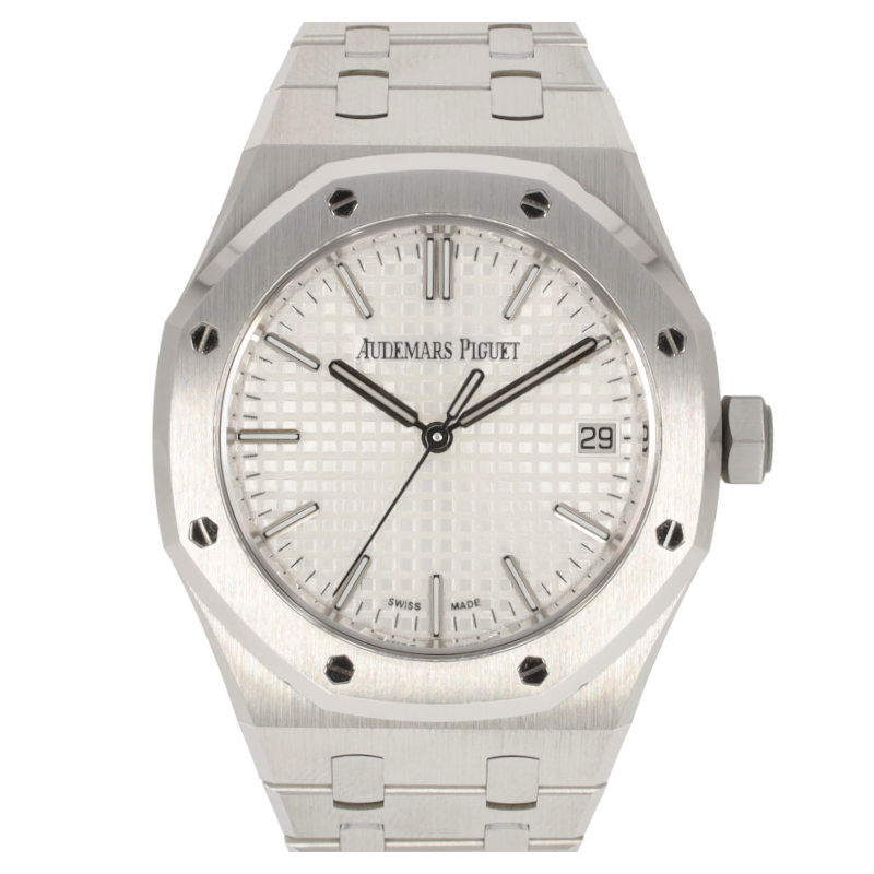 This Audemars Piguet Royal Oak 15550ST.OO.1356ST.01 has a silver baton dial and a bracelet strap. This Audemars Piguet has undergone a thorough inspection of accuracy, functionality and condition at our Audemars Piguet certified service centre to determine the level of reconditioning required to meet our strict standards. It has also been checked against our records to ensure authenticity. Our watches have a 24-month warranty for your peace of mind, in conjunction with any remaining manufacturer’s warranty from new or from service.