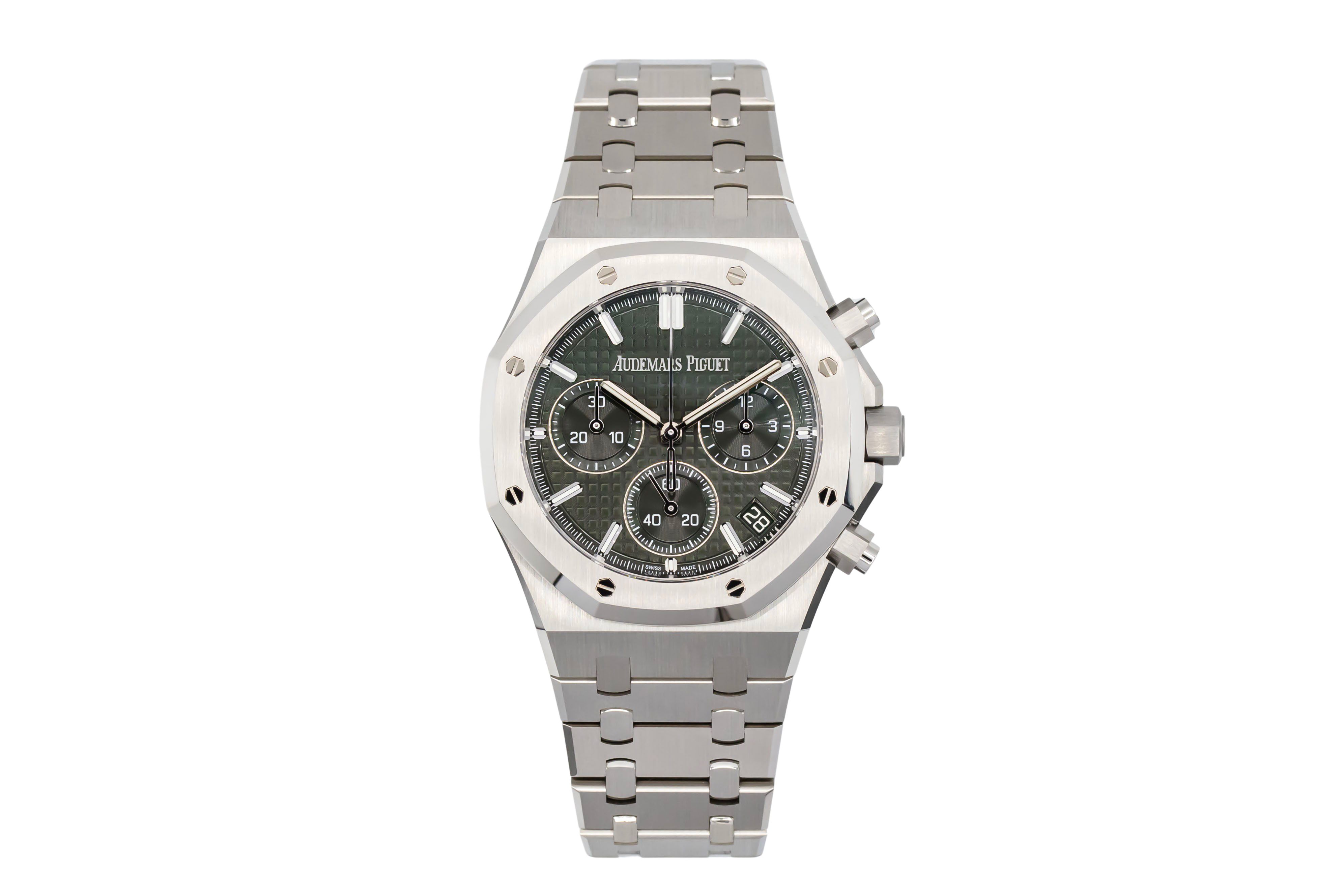 This Audemars Piguet Royal Oak 26240ST.OO.1320ST.04 has a khaki dial and a bracelet strap. This Audemars Piguet has undergone a thorough inspection of accuracy, functionality and condition at our Audemars Piguet certified service centre to determine the level of reconditioning required to meet our strict standards. It has also been checked against our records to ensure authenticity. All our watches have a 24-month warranty for your peace of mind.