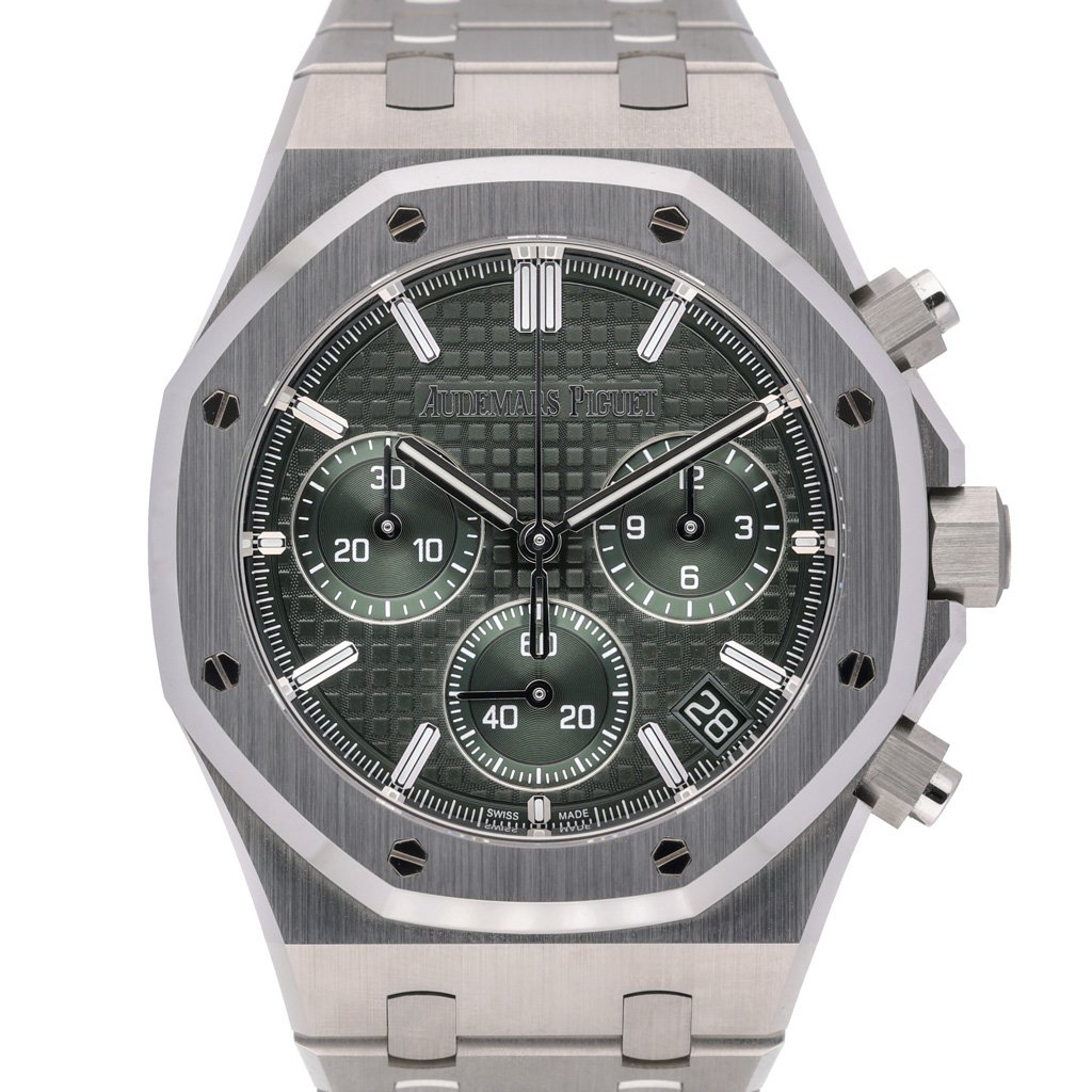 This Audemars Piguet Royal Oak 26240ST.OO.1320ST.08 has a green baton dial and a bracelet strap. This Audemars Piguet has undergone a thorough inspection of accuracy, functionality and condition at our Audemars Piguet certified service centre to determine the level of reconditioning required to meet our strict standards. It has also been checked against our records to ensure authenticity. All our watches have a 24-month warranty for your peace of mind.