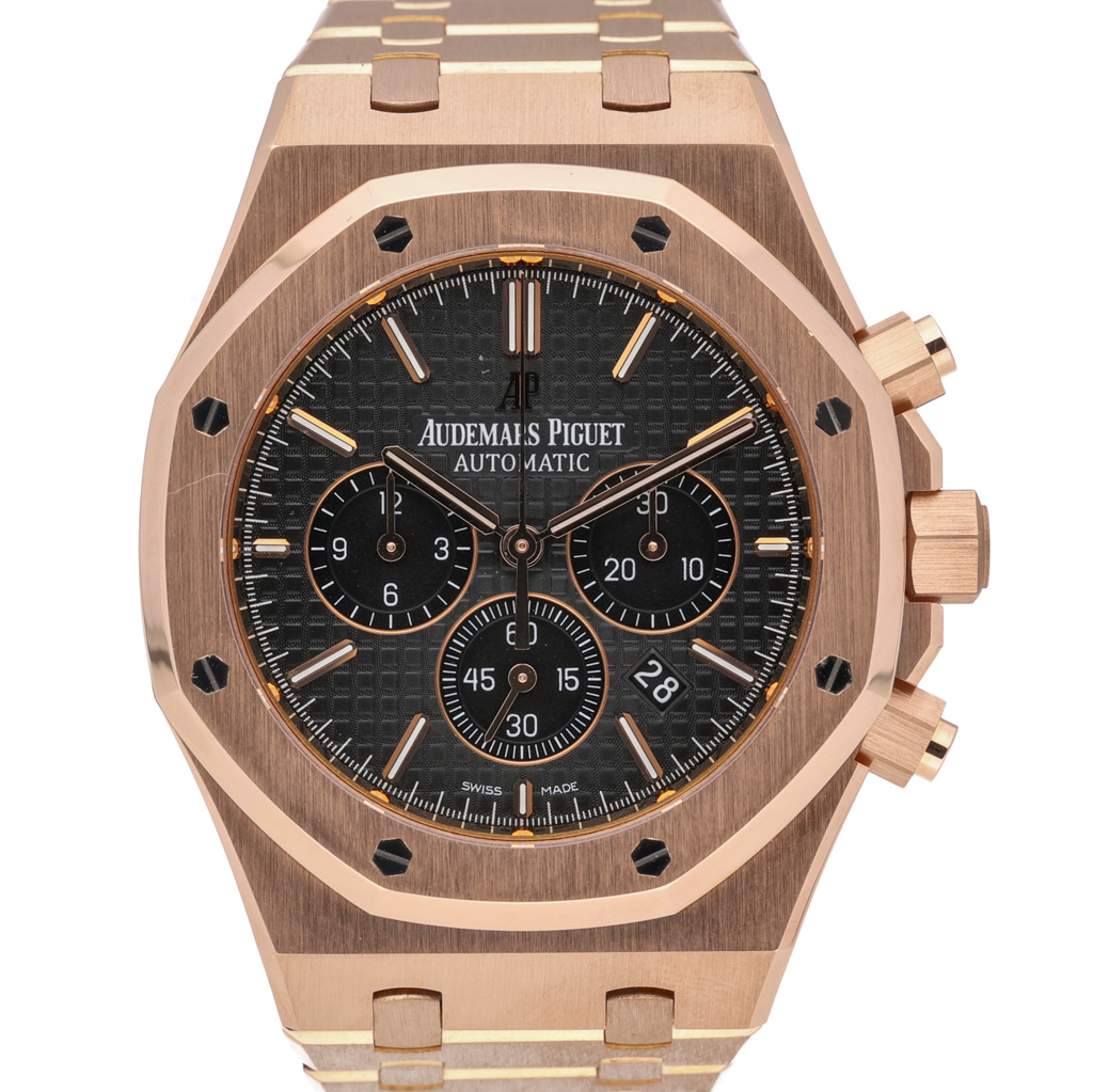 This Audemars Piguet Royal Oak 26320OR.OO.1220OR.01 has a black baton dial and a bracelet strap. This Audemars Piguet has undergone a thorough inspection of accuracy, functionality and condition at our Audemars Piguet certified service centre to determine the level of reconditioning required to meet our strict standards. It has also been checked against our records to ensure authenticity. All our watches have a 24-month warranty for your peace of mind.