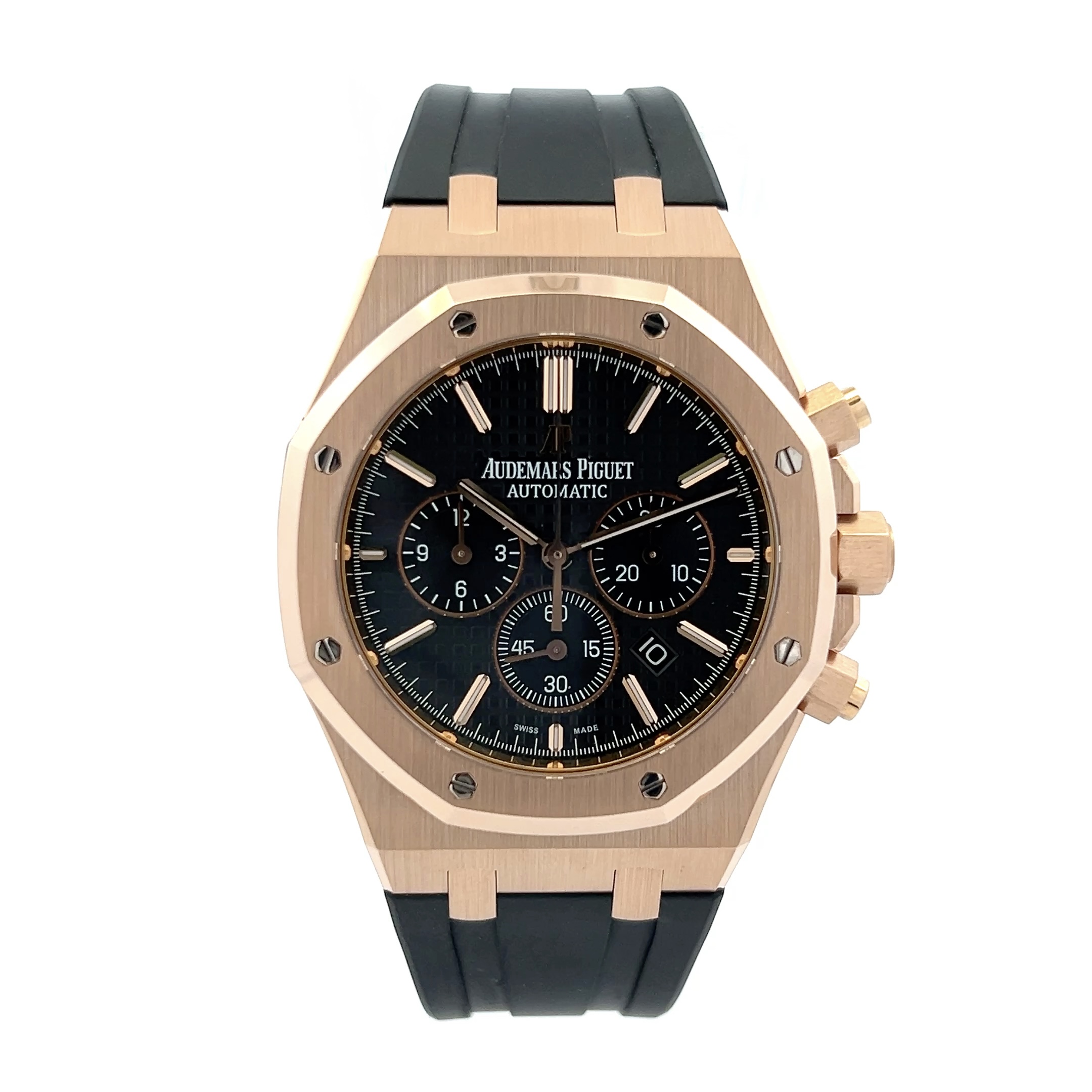 This Audemars Piguet Royal Oak 26320OR.OO.D002CR.01 has a black baton dial and a rubber strap. This Audemars Piguet has undergone a thorough inspection of accuracy, functionality and condition at our Audemars Piguet certified service centre to determine the level of reconditioning required to meet our strict standards. It has also been checked against our records to ensure authenticity. All our watches have a 24-month warranty for your peace of mind.