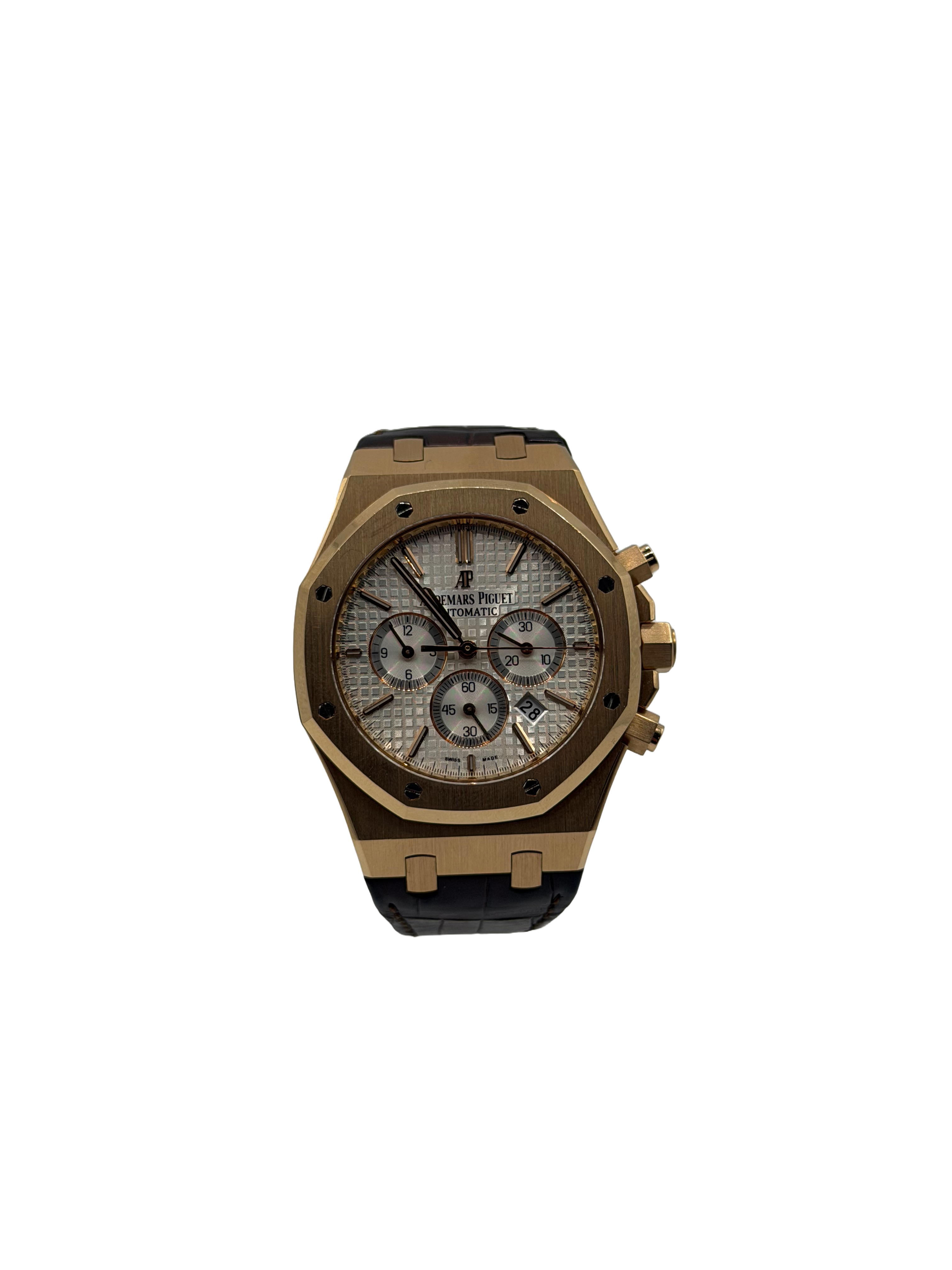 This Audemars Piguet Royal Oak 26320OR.OO.D088CR.01 has a silver baton dial and a leather strap. This Audemars Piguet has undergone a thorough inspection of accuracy, functionality and condition at our Audemars Piguet certified service centre to determine the level of reconditioning required to meet our strict standards. It has also been checked against our records to ensure authenticity. All our watches have a 24-month warranty for your peace of mind.
