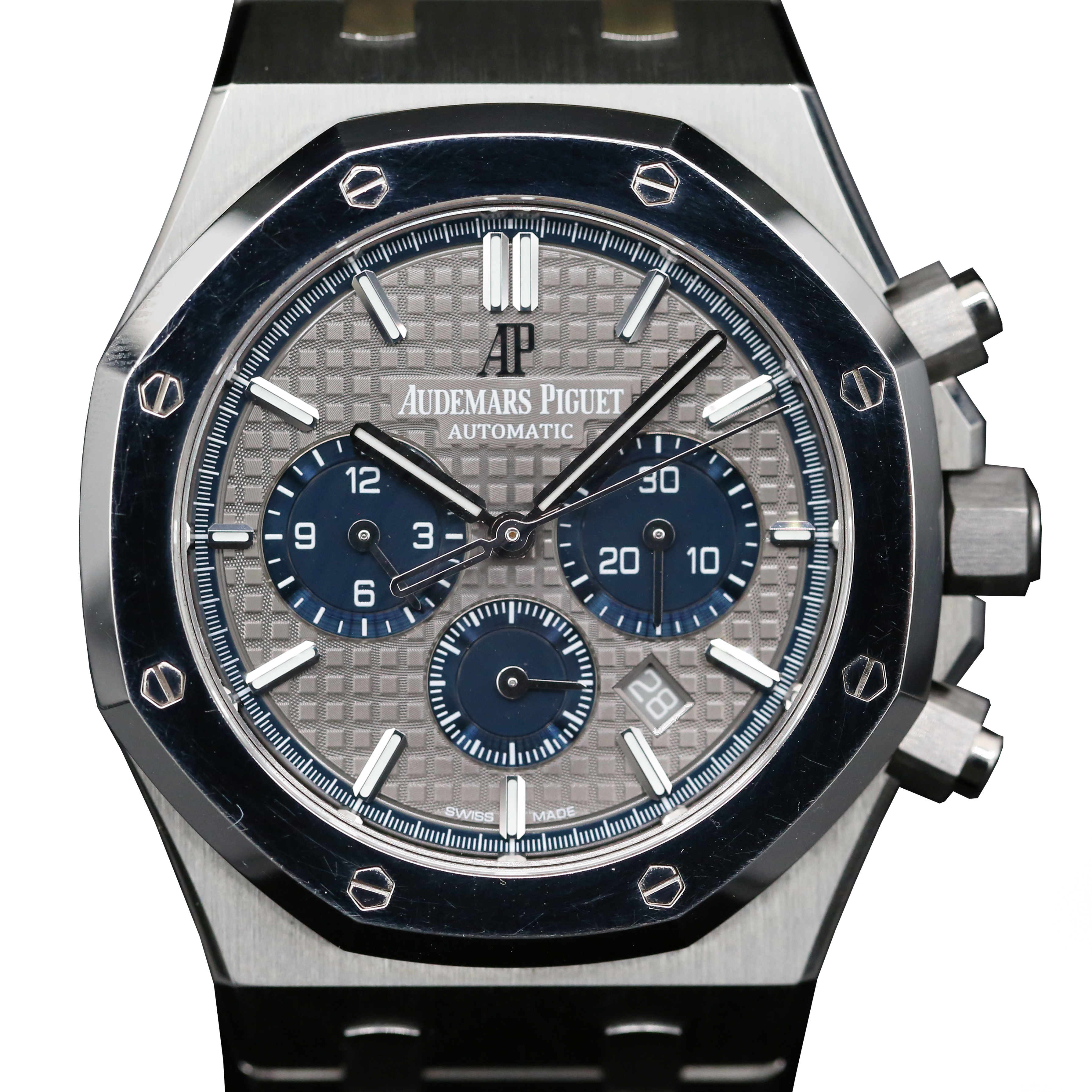 This Audemars Piguet Royal Oak 26331IP.OO.1220IP.01 has a grey baton dial and a bracelet strap. This Audemars Piguet has undergone a thorough inspection of accuracy, functionality and condition at our Audemars Piguet certified service centre to determine the level of reconditioning required to meet our strict standards. It has also been checked against our records to ensure authenticity. All our watches have a 24-month warranty for your peace of mind.