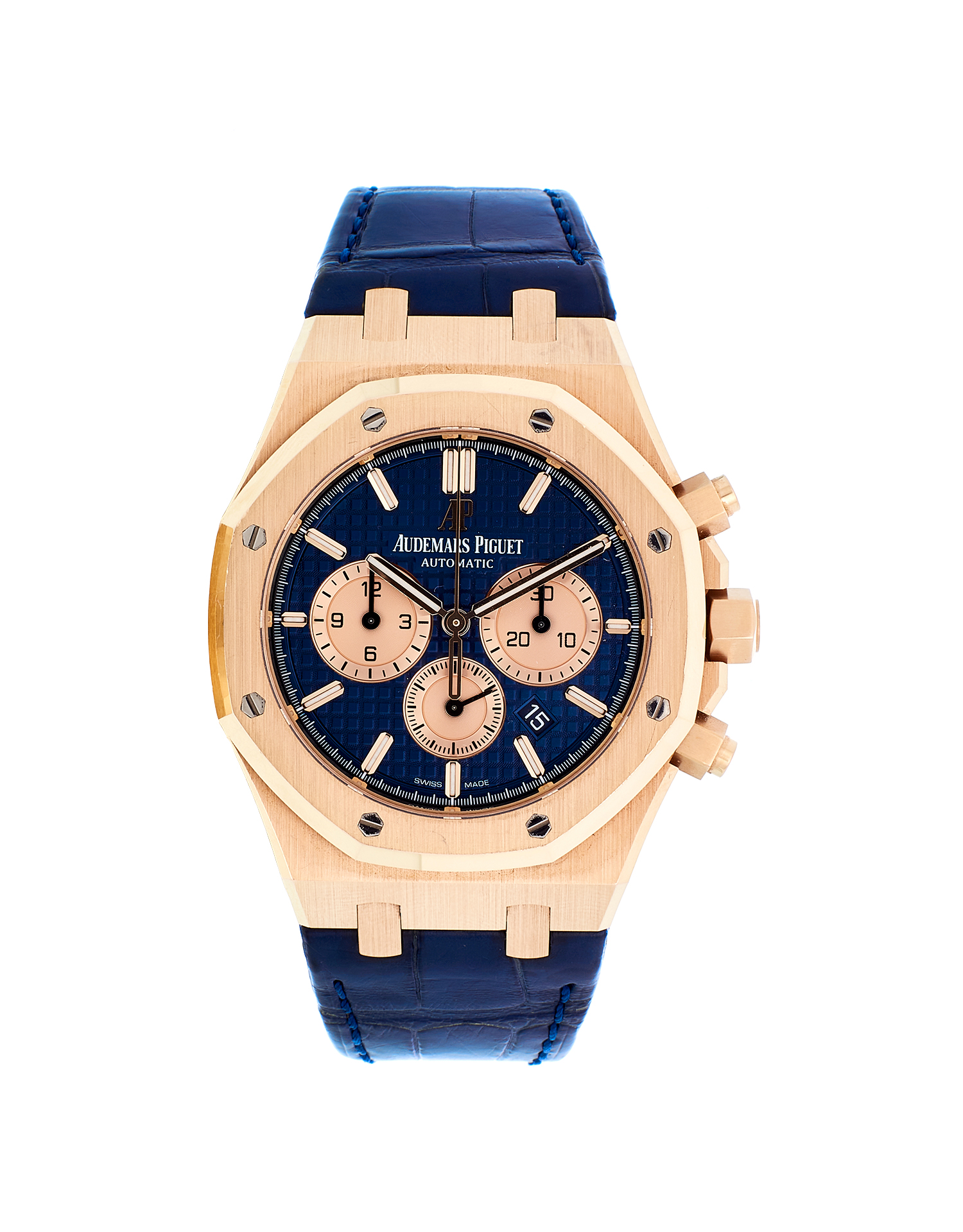 This Audemars Piguet Royal Oak 26331OR.OO.D315CR.01 has a blue baton dial and a leather strap. This Audemars Piguet has undergone a thorough inspection of accuracy, functionality and condition at our Audemars Piguet certified service centre to determine the level of reconditioning required to meet our strict standards. It has also been checked against our records to ensure authenticity. All our watches have a 24-month warranty for your peace of mind.