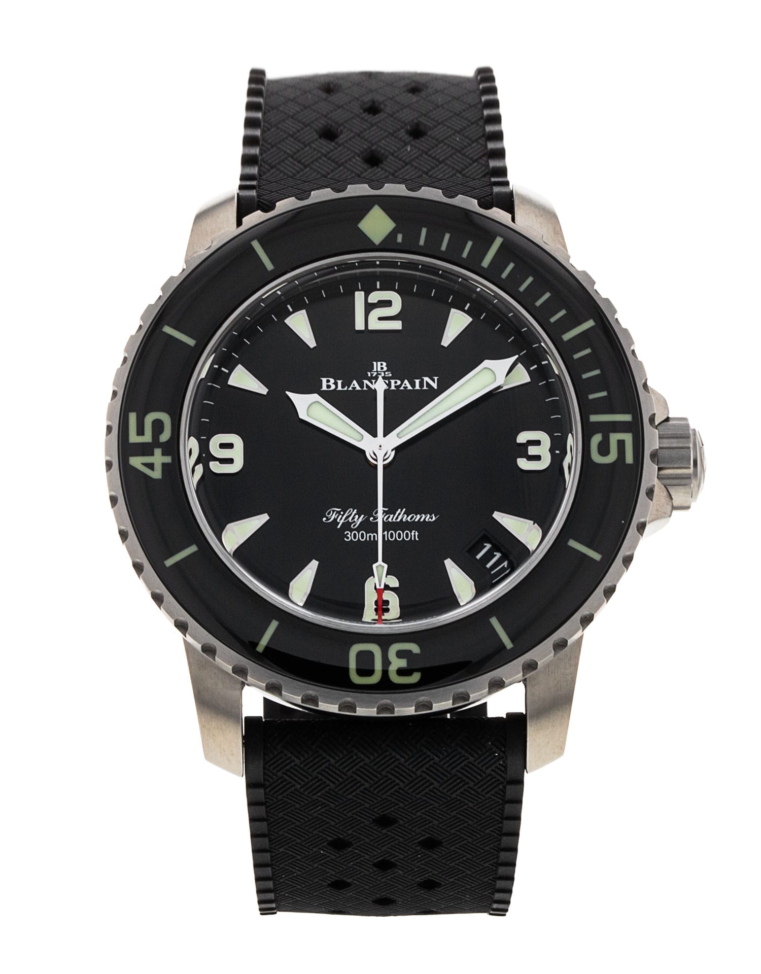 This Blancpain Fifty Fathoms 5010-12B30-NABA has a black quarter arabic dial and a fabric strap. This Blancpain has undergone a thorough inspection of water resistance, accuracy, functionality and condition to determine the level of reconditioning required to meet our strict standards. It has also been referenced against technical documents and manufacturer records where available to ensure authenticity and a clean history. Our watches have a 24-month warranty for your peace of mind, in conjunction with any remaining manufacturer’s warranty from new or from service.
