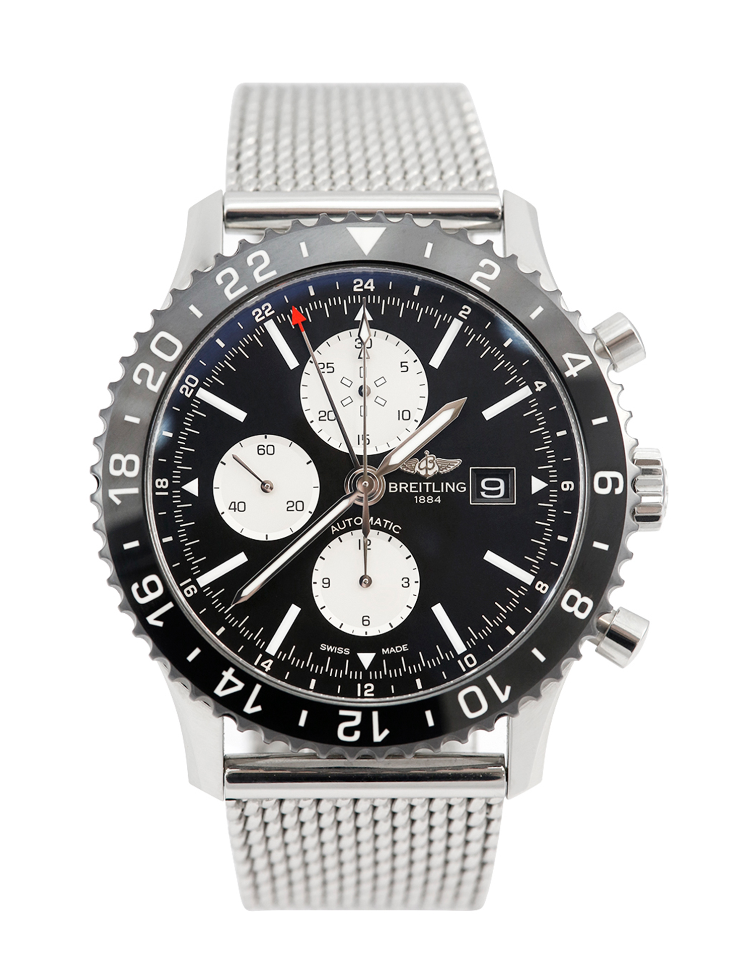 This Breitling Chronoliner Y24310 has a black baton dial and a bracelet strap. This Breitling has undergone a thorough inspection of water resistance, accuracy, functionality and condition to determine the level of reconditioning required to meet our strict standards. It has also been referenced against technical documents and manufacturer records where available to ensure authenticity and a clean history. All our watches have a 24-month warranty for your peace of mind.