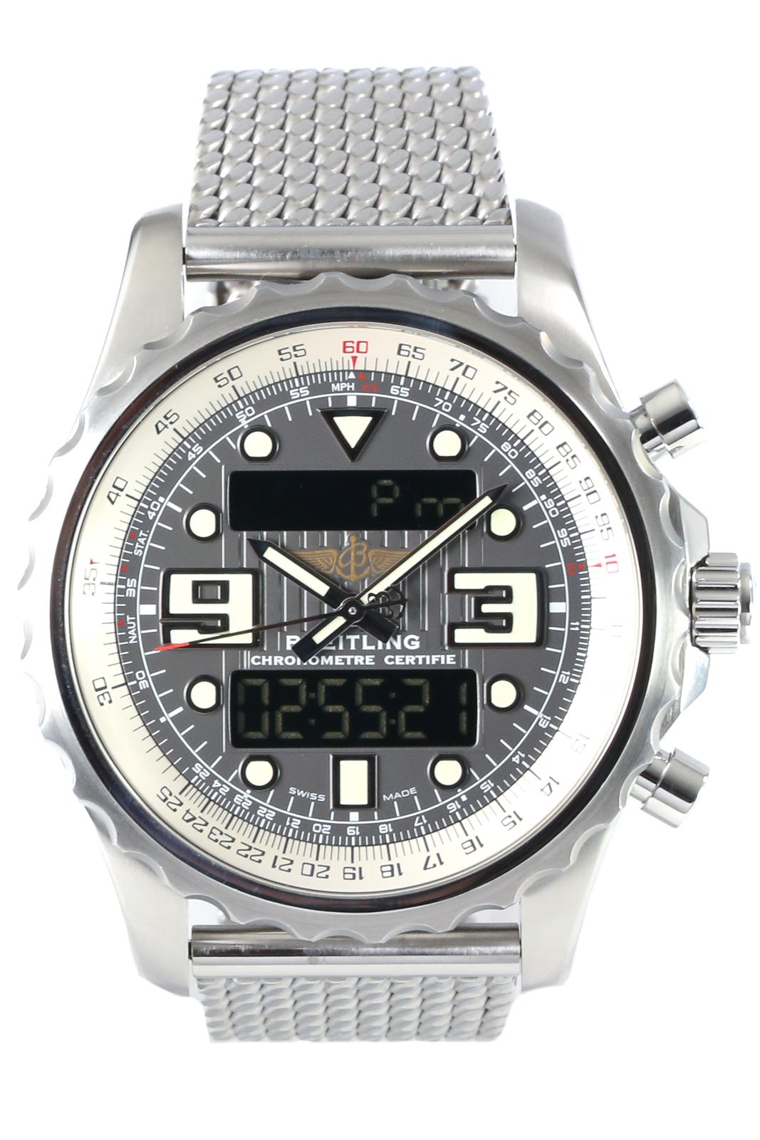 This Breitling Chronospace A78365 has a grey dial and a bracelet strap. This Breitling has undergone a thorough inspection of water resistance, accuracy, functionality and condition to determine the level of reconditioning required to meet our strict standards. It has also been referenced against technical documents and manufacturer records where available to ensure authenticity and a clean history. All our watches have a 24-month warranty for your peace of mind.