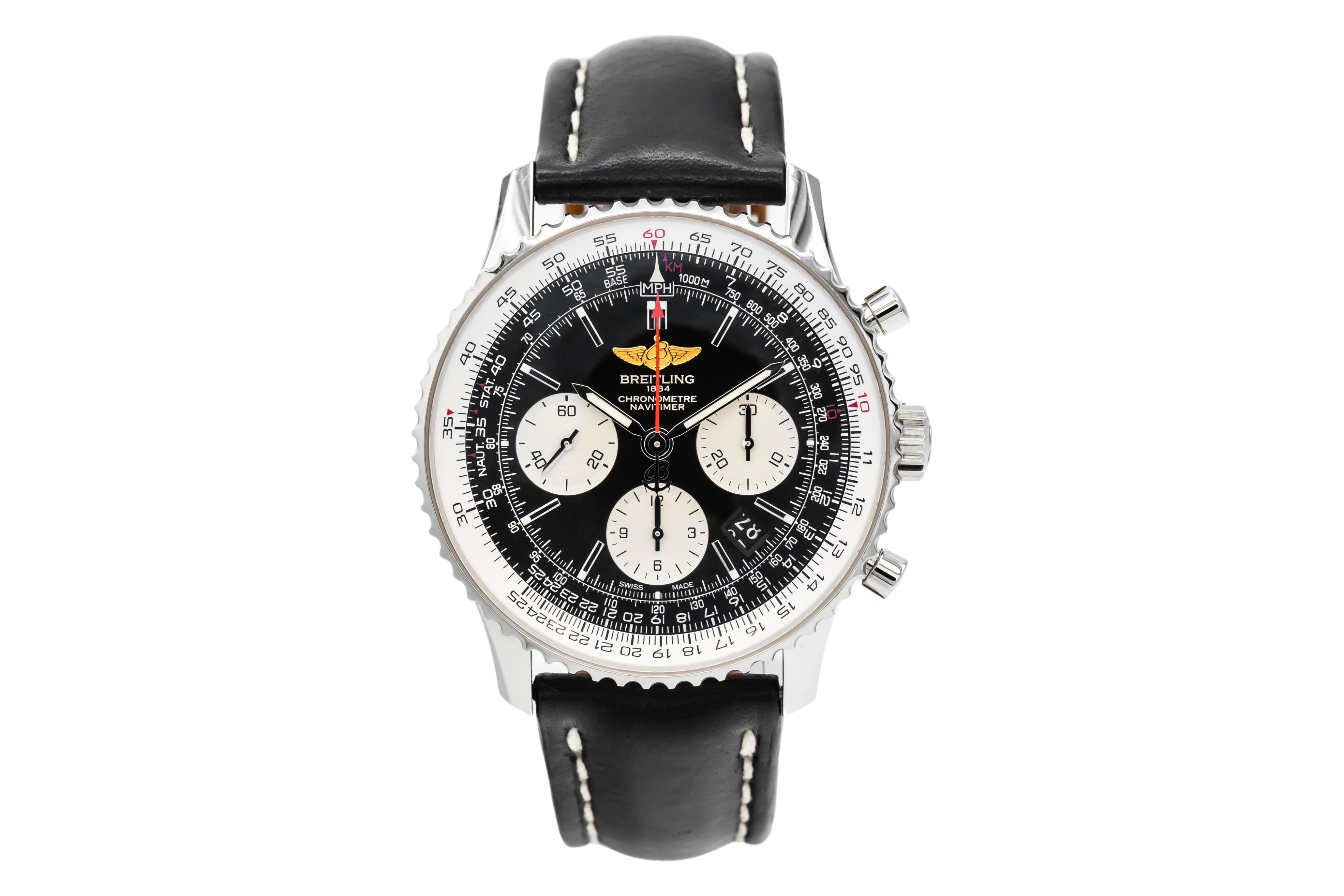 This Breitling Navitimer AB0120 has a black baton - silver sub-dials dial and a leather strap. This Breitling has undergone a thorough inspection of water resistance, accuracy, functionality and condition to determine the level of reconditioning required to meet our strict standards. It has also been referenced against technical documents and manufacturer records where available to ensure authenticity and a clean history. All our watches have a 24-month warranty for your peace of mind.