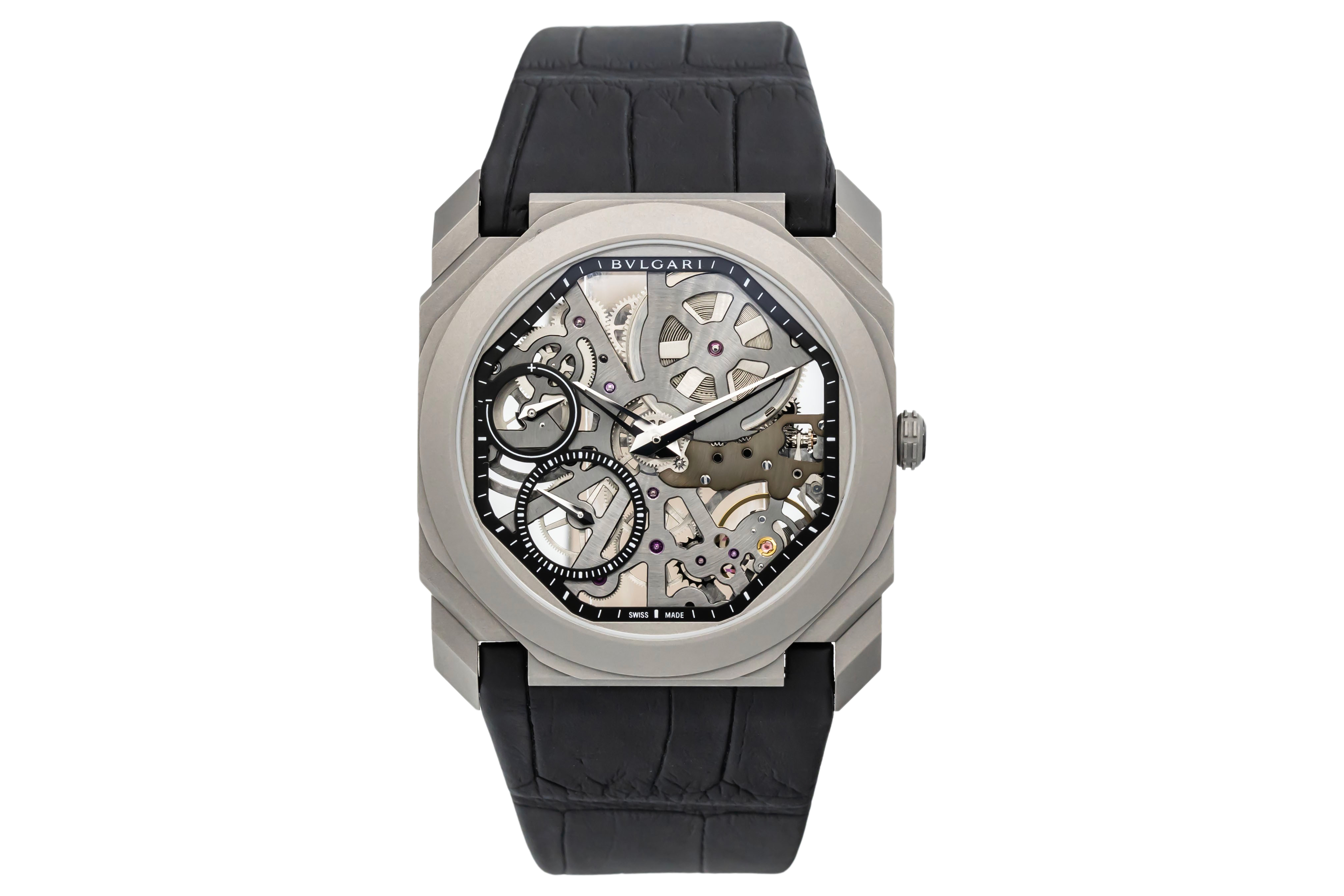 This Bvlgari Octo 102714 has a skeleton dial and a leather strap. This Bvlgari has undergone a thorough inspection of water resistance, accuracy, functionality and condition to determine the level of reconditioning required to meet our strict standards. It has also been referenced against technical documents and manufacturer records where available to ensure authenticity and a clean history. All our watches have a 24-month warranty for your peace of mind.