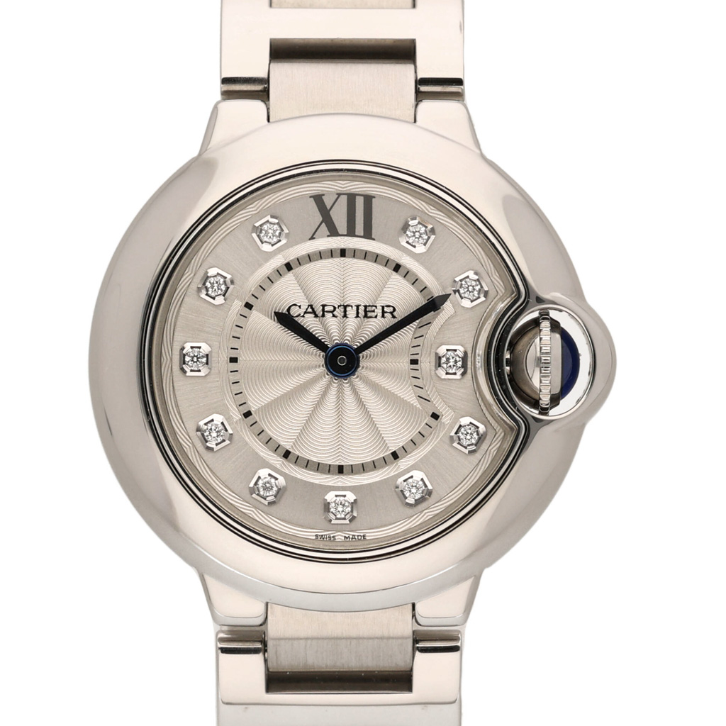 This Cartier Ballon Bleu De Cartier WE902073 has a silver diamond dial and a bracelet strap. This Cartier has undergone a thorough inspection of accuracy, functionality and condition at our Cartier certified service centre to determine the level of reconditioning required to meet our strict standards. It has also been checked against our records to ensure authenticity. All our watches have a 24-month warranty for your peace of mind.