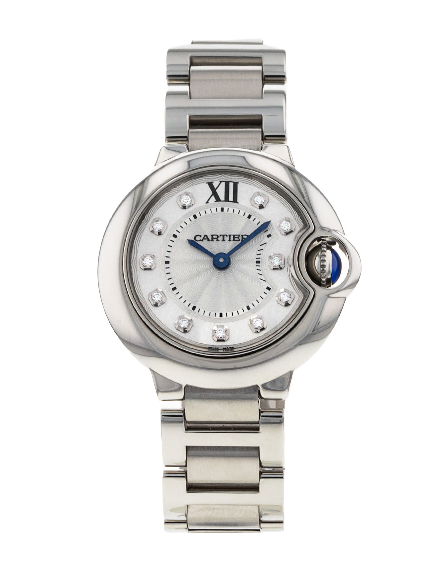 This Cartier Ballon Bleu De Cartier WE902073 has a silver diamond dial and a bracelet strap. This Cartier has undergone a thorough inspection of accuracy, functionality and condition at our Cartier certified service centre to determine the level of reconditioning required to meet our strict standards. It has also been checked against our records to ensure authenticity. Our watches have a 24-month warranty for your peace of mind, in conjunction with any remaining manufacturer’s warranty from new or from service.