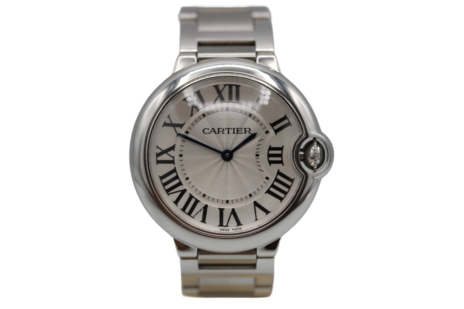 This Cartier Ballon Bleu W69011Z4 has a silver roman numeral dial and a bracelet strap. This Cartier has undergone a thorough inspection of accuracy, functionality and condition at our Cartier certified service centre to determine the level of reconditioning required to meet our strict standards. It has also been checked against our records to ensure authenticity. All our watches have a 24-month warranty for your peace of mind.
