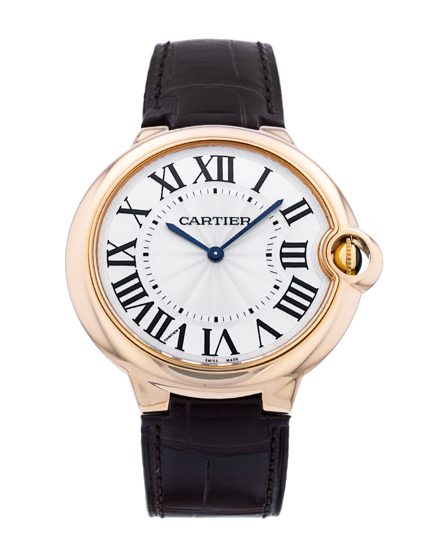 This Cartier Ballon Bleu W6920083 has a silver roman numeral dial and a leather strap. This Cartier has undergone a thorough inspection of accuracy, functionality and condition at our Cartier certified service centre to determine the level of reconditioning required to meet our strict standards. It has also been checked against our records to ensure authenticity. All our watches have a 24-month warranty for your peace of mind.