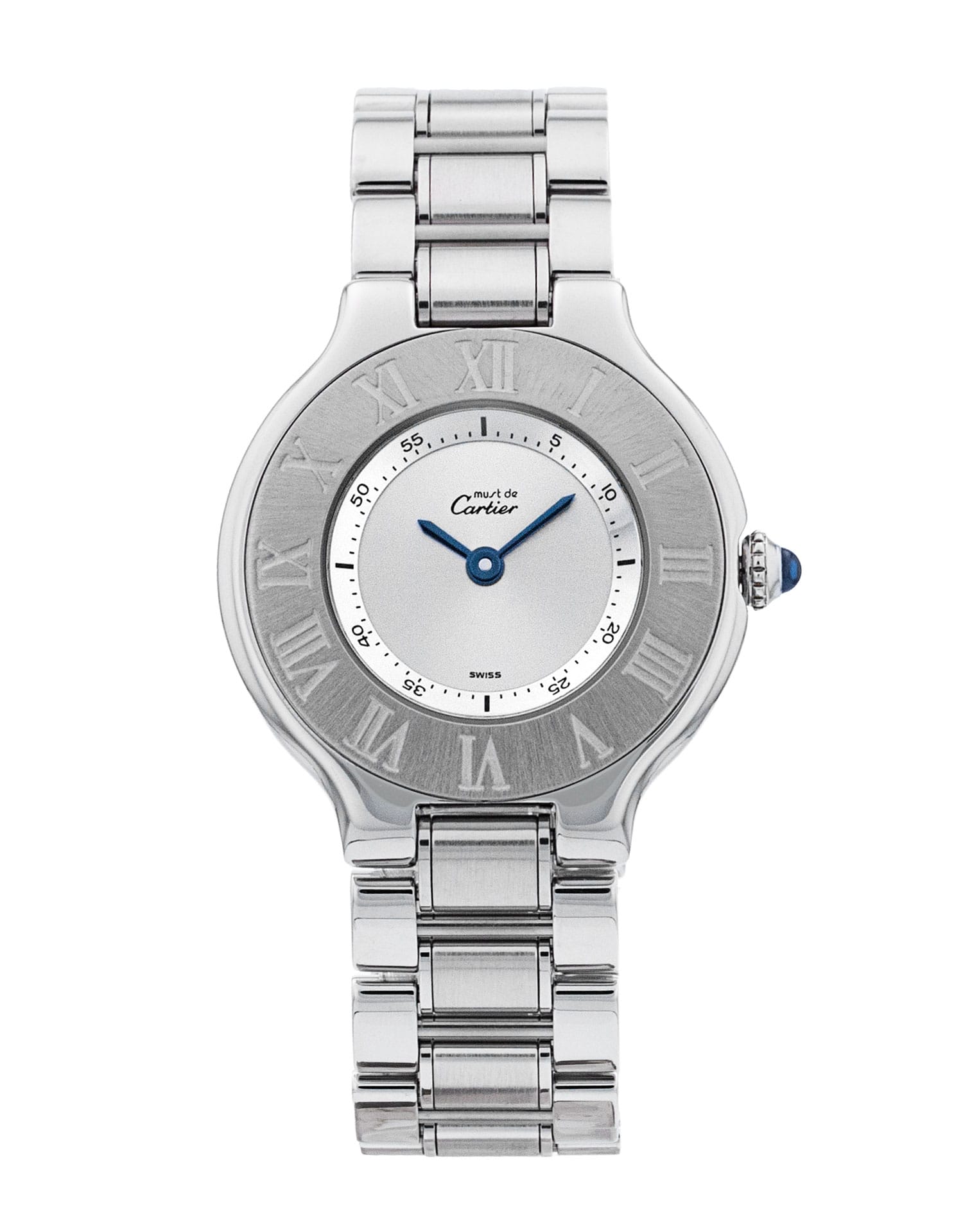 This Cartier Must 21 W10109T2 has a silver dial and a bracelet strap. This Cartier has undergone a thorough inspection of accuracy, functionality and condition at our Cartier certified service centre to determine the level of reconditioning required to meet our strict standards. It has also been checked against our records to ensure authenticity. All our watches have a 24-month warranty for your peace of mind.