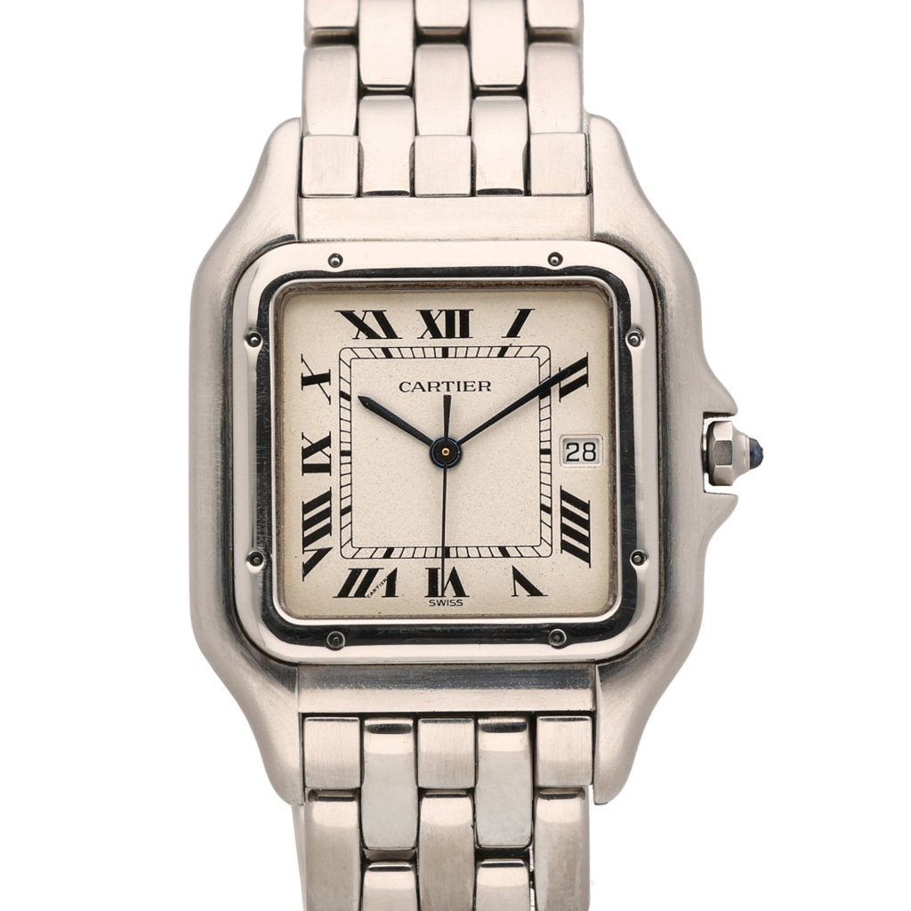 This Cartier Panthere W25032F5 has a silver dial and a bracelet strap. This Cartier has undergone a thorough inspection of accuracy, functionality and condition at our Cartier certified service centre to determine the level of reconditioning required to meet our strict standards. It has also been checked against our records to ensure authenticity. All our watches have a 24-month warranty for your peace of mind.
