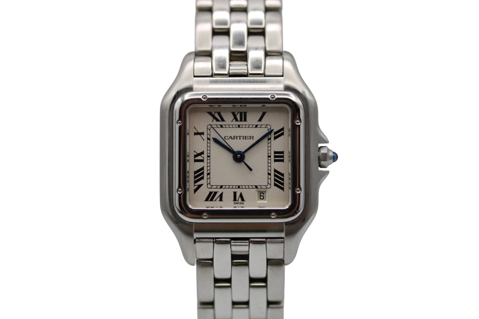This Cartier Panthere W25054P5 has a white roman numeral dial and a bracelet strap. This Cartier has undergone a thorough inspection of accuracy, functionality and condition at our Cartier certified service centre to determine the level of reconditioning required to meet our strict standards. It has also been checked against our records to ensure authenticity. All our watches have a 24-month warranty for your peace of mind.