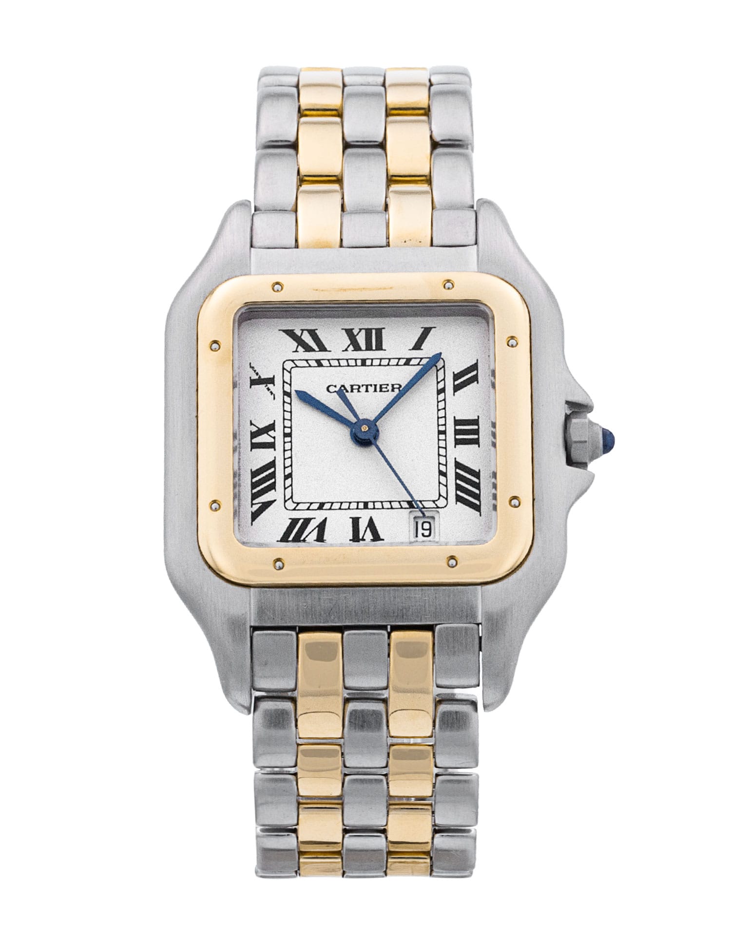 This Cartier Panthere 110000R has a silver roman numeral dial and a bracelet strap. This Cartier has undergone a thorough inspection of accuracy, functionality and condition at our Cartier certified service centre to determine the level of reconditioning required to meet our strict standards. It has also been checked against our records to ensure authenticity. All our watches have a 24-month warranty for your peace of mind.