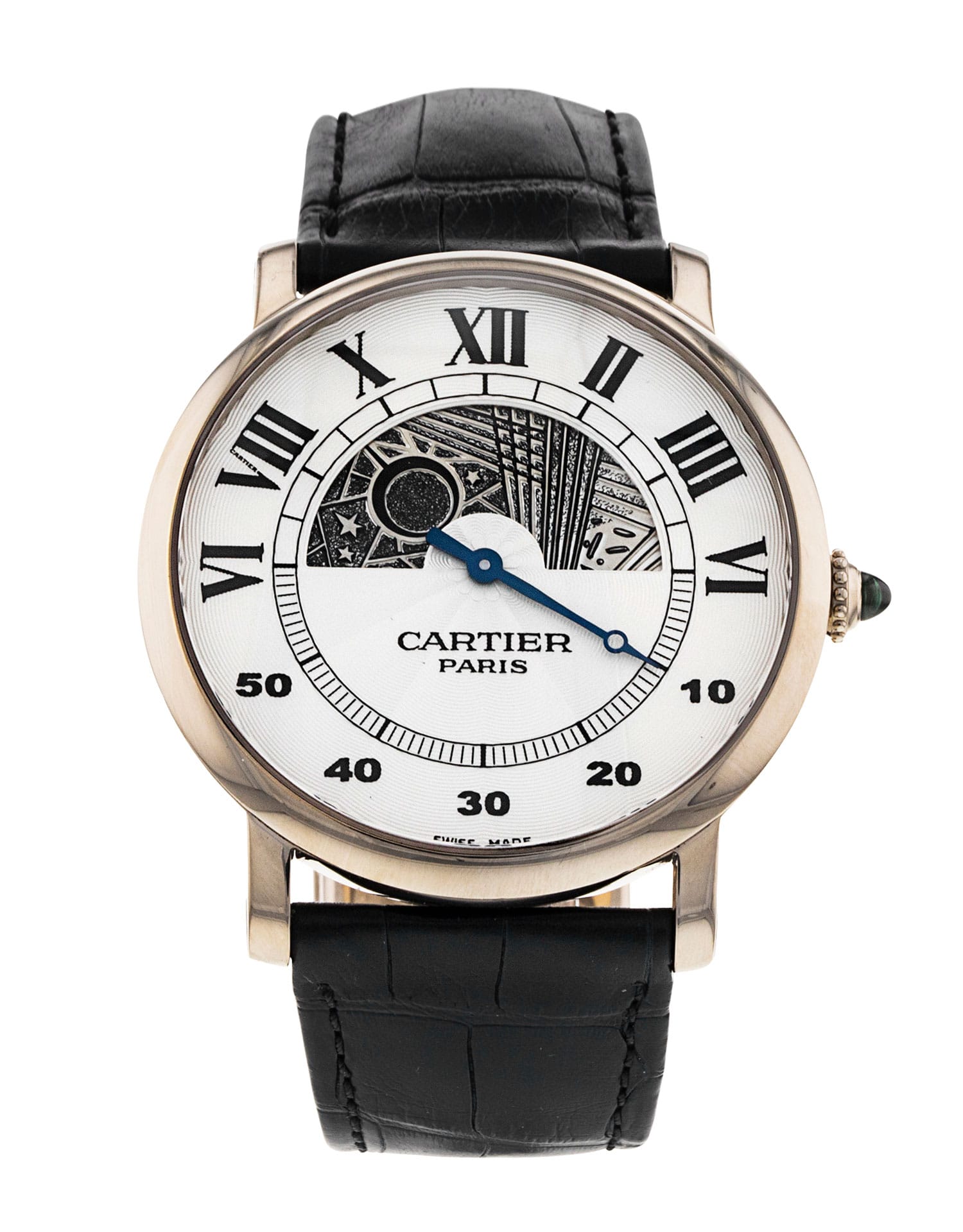 This Cartier Rotonde De Cartier W1550151 has a silver dial and a leather strap. This Cartier has undergone a thorough inspection of accuracy, functionality and condition at our Cartier certified service centre to determine the level of reconditioning required to meet our strict standards. It has also been checked against our records to ensure authenticity. All our watches have a 24-month warranty for your peace of mind.