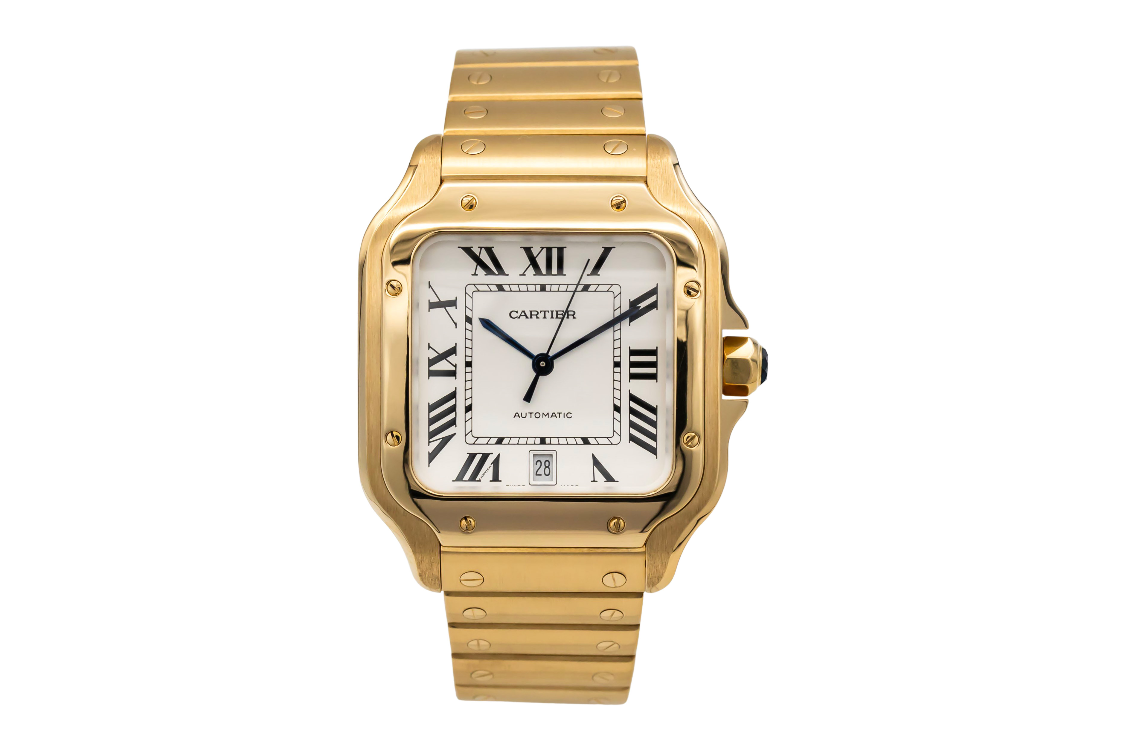 This Cartier Santos De Cartier WGSA0009 has a silver roman numeral dial and a bracelet strap. This Cartier has undergone a thorough inspection of accuracy, functionality and condition at our Cartier certified service centre to determine the level of reconditioning required to meet our strict standards. It has also been checked against our records to ensure authenticity. All our watches have a 24-month warranty for your peace of mind.