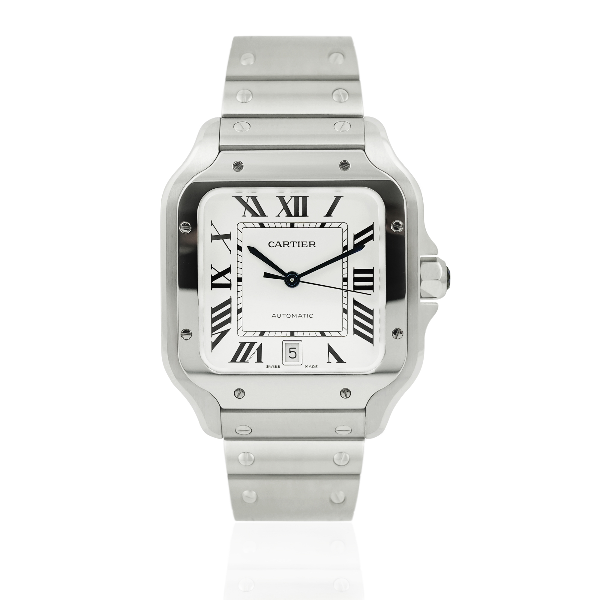 This Cartier Santos De Cartier WSSA0018 has a silver roman numeral dial and a bracelet strap. This Cartier has undergone a thorough inspection of accuracy, functionality and condition at our Cartier certified service centre to determine the level of reconditioning required to meet our strict standards. It has also been checked against our records to ensure authenticity. Our watches have a 24-month warranty for your peace of mind, in conjunction with any remaining manufacturer’s warranty from new or from service.