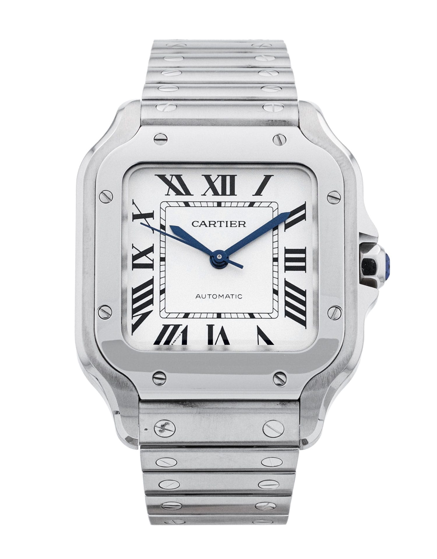 This Cartier Santos De Cartier WSSA0029 has a silver roman numeral dial and a bracelet strap. This Cartier has undergone a thorough inspection of accuracy, functionality and condition at our Cartier certified service centre to determine the level of reconditioning required to meet our strict standards. It has also been checked against our records to ensure authenticity. Our watches have a 24-month warranty for your peace of mind, in conjunction with any remaining manufacturer’s warranty from new or from service.