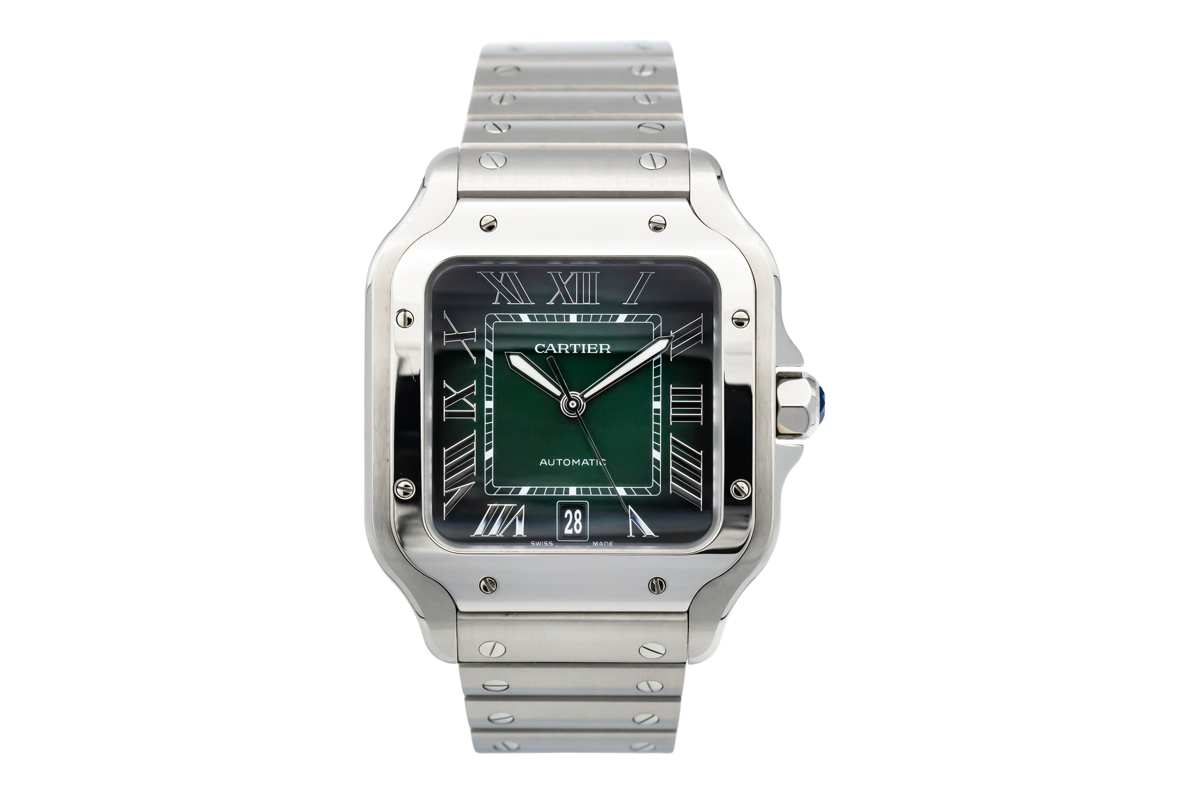This Cartier Santos De Cartier WSSA0062 has a green roman numeral dial and a bracelet strap. This Cartier has undergone a thorough inspection of accuracy, functionality and condition at our Cartier certified service centre to determine the level of reconditioning required to meet our strict standards. It has also been checked against our records to ensure authenticity. All our watches have a 24-month warranty for your peace of mind.