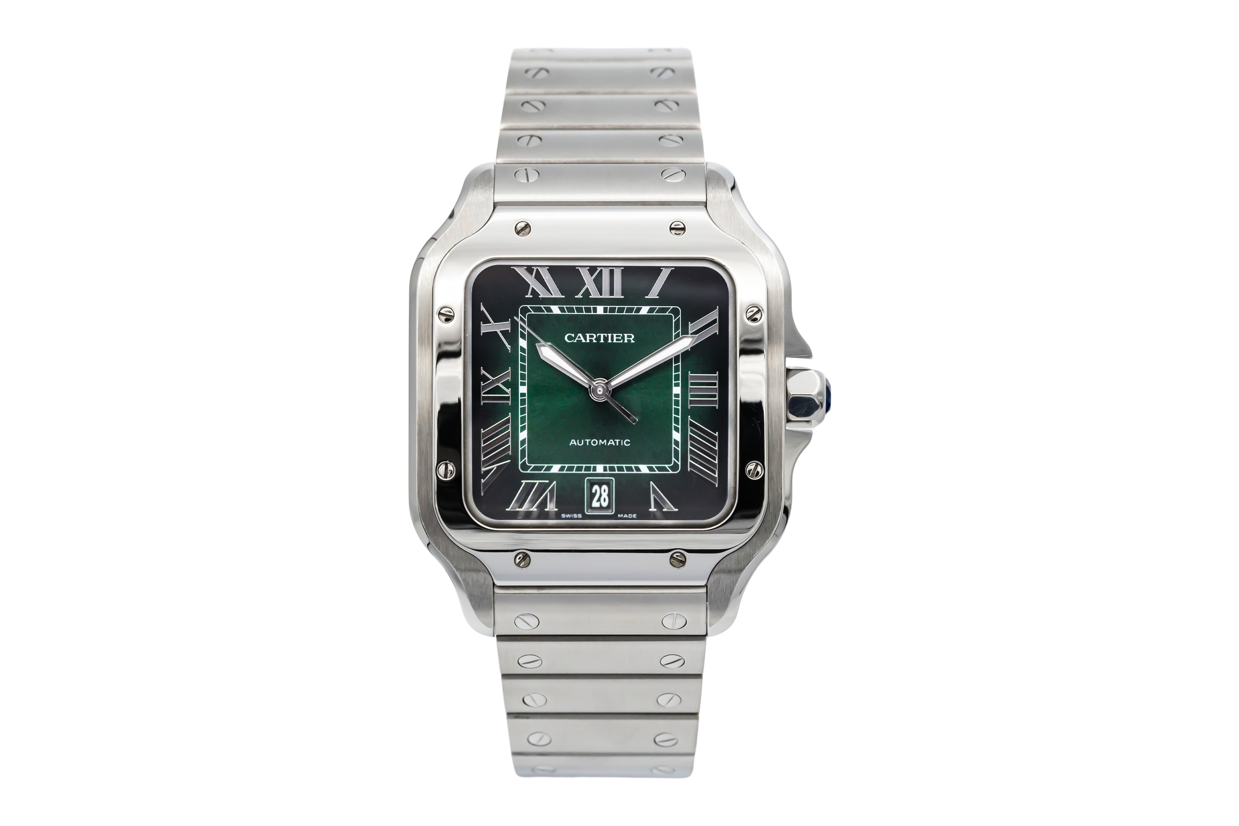 This Cartier Santos De Cartier WSSA0062 has a green roman numeral dial and a bracelet strap. This Cartier has undergone a thorough inspection of accuracy, functionality and condition at our Cartier certified service centre to determine the level of reconditioning required to meet our strict standards. It has also been checked against our records to ensure authenticity. All our watches have a 24-month warranty for your peace of mind.