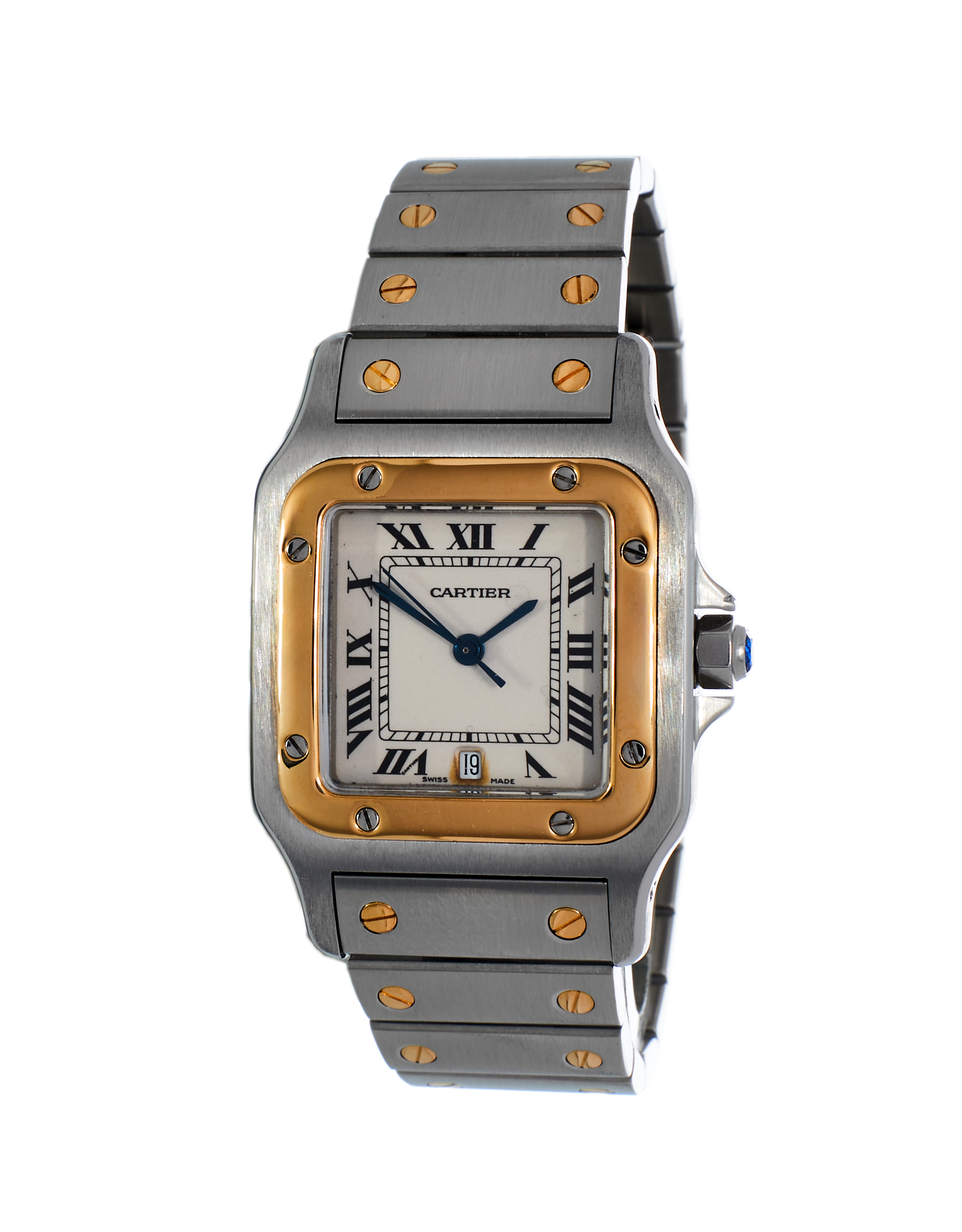 This Cartier Santos Galbee W20011C4 has a silver roman numeral dial and a bracelet strap. This Cartier has undergone a thorough inspection of accuracy, functionality and condition at our Cartier certified service centre to determine the level of reconditioning required to meet our strict standards. It has also been checked against our records to ensure authenticity. All our watches have a 24-month warranty for your peace of mind.