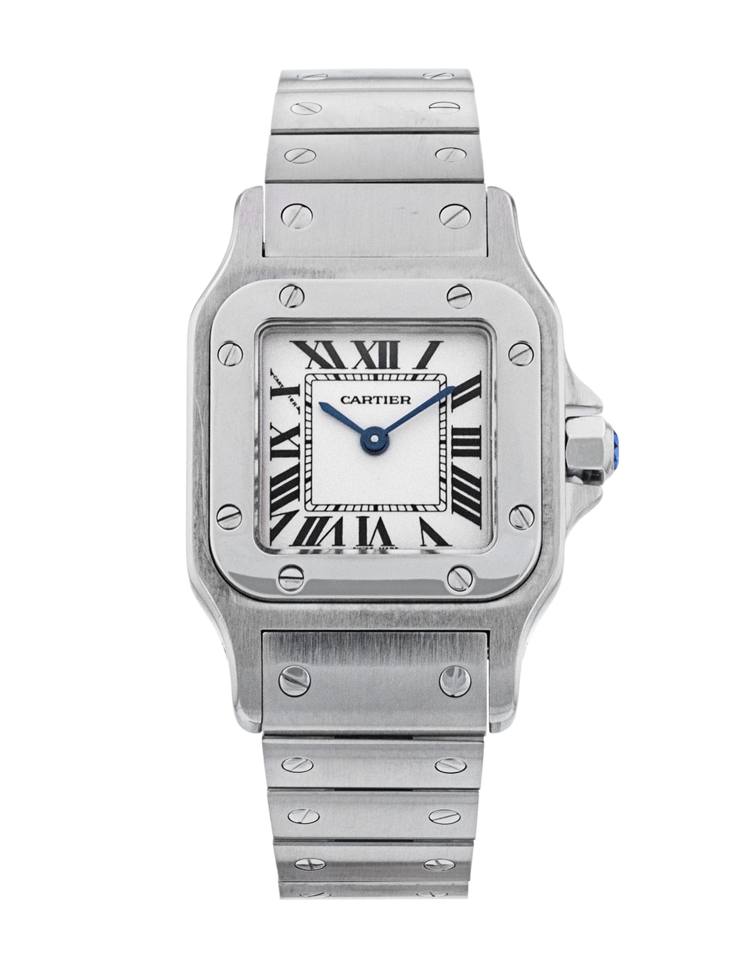 This Cartier Santos Galbee W20056D6 has a silver roman numeral dial and a bracelet strap. This Cartier has undergone a thorough inspection of accuracy, functionality and condition at our Cartier certified service centre to determine the level of reconditioning required to meet our strict standards. It has also been checked against our records to ensure authenticity. All our watches have a 24-month warranty for your peace of mind.