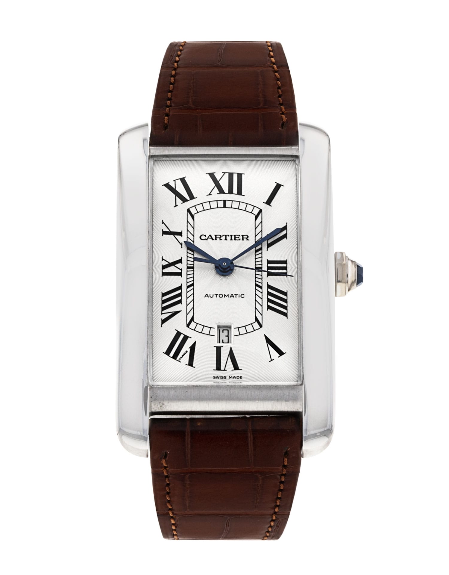 This Cartier Tank Americaine W2609956 has a silver roman numeral dial and a leather strap. This Cartier has undergone a thorough inspection of accuracy, functionality and condition at our Cartier certified service centre to determine the level of reconditioning required to meet our strict standards. It has also been checked against our records to ensure authenticity. All our watches have a 24-month warranty for your peace of mind.