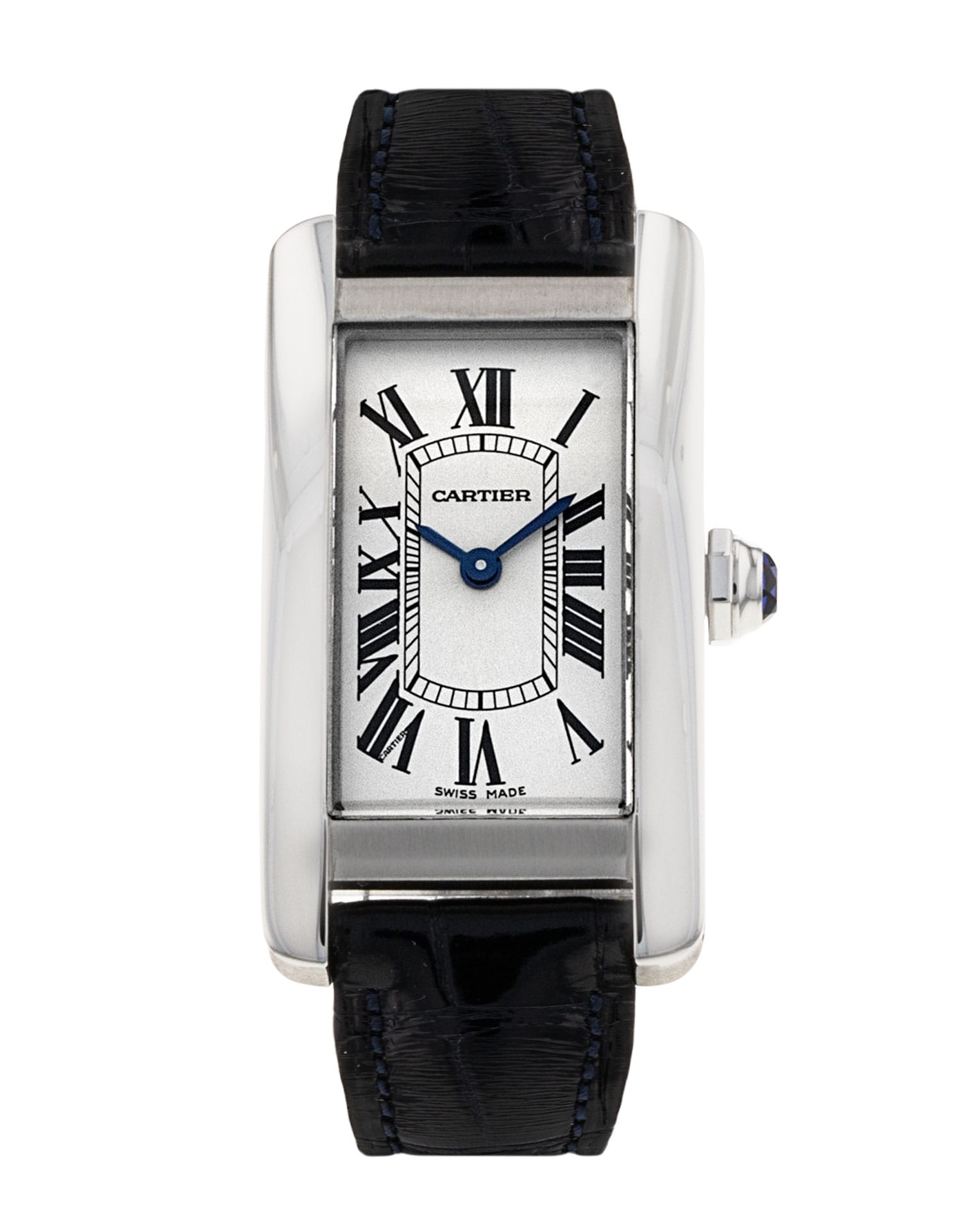 This Cartier Tank Americaine WSTA0016 has a silver roman numeral dial and a leather strap. This Cartier has undergone a thorough inspection of accuracy, functionality and condition at our Cartier certified service centre to determine the level of reconditioning required to meet our strict standards. It has also been checked against our records to ensure authenticity. All our watches have a 24-month warranty for your peace of mind.
