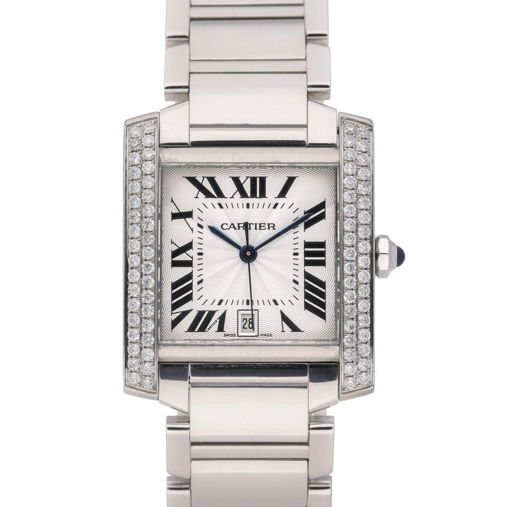 This Cartier Tank Francaise W51002Q3 has a silver roman numeral dial and a bracelet strap. This Cartier has undergone a thorough inspection of accuracy, functionality and condition at our Cartier certified service centre to determine the level of reconditioning required to meet our strict standards. It has also been checked against our records to ensure authenticity. All our watches have a 24-month warranty for your peace of mind.