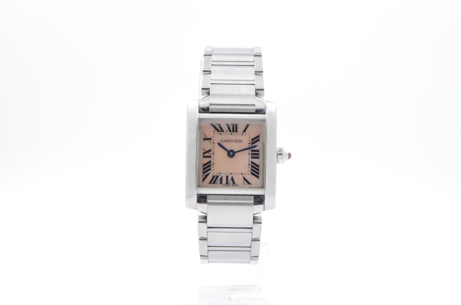 This Cartier Tank Francaise W51028Q3 has a mother of pearl pink roman numeral dial and a bracelet strap. This Cartier has undergone a thorough inspection of accuracy, functionality and condition at our Cartier certified service centre to determine the level of reconditioning required to meet our strict standards. It has also been checked against our records to ensure authenticity. All our watches have a 24-month warranty for your peace of mind.