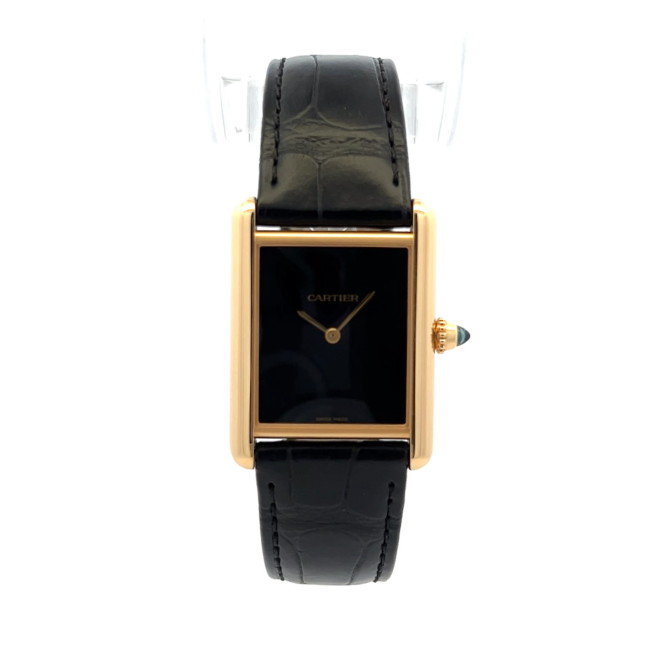 This Cartier Tank Louis Cartier WGTA0091 has a black dial and a leather strap. This Cartier has undergone a thorough inspection of accuracy, functionality and condition at our Cartier certified service centre to determine the level of reconditioning required to meet our strict standards. It has also been checked against our records to ensure authenticity. Our watches have a 24-month warranty for your peace of mind, in conjunction with any remaining manufacturer’s warranty from new or from service.