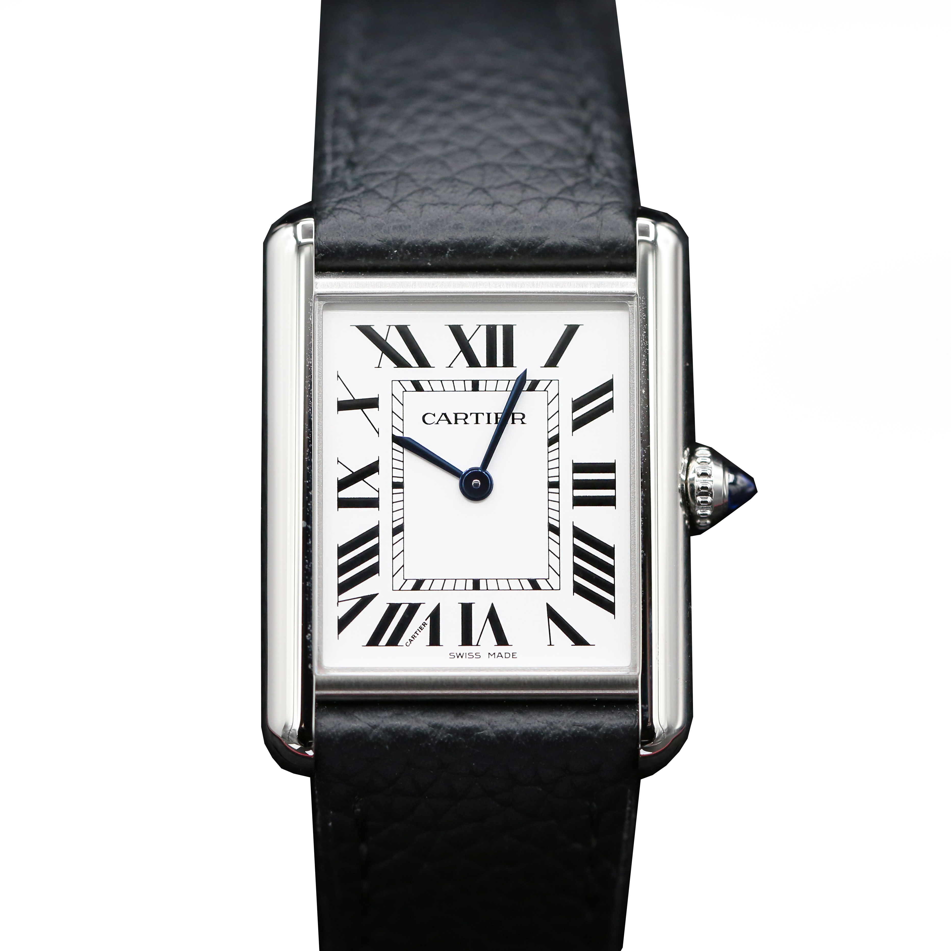 This Cartier Tank Must De Cartier WSTA0109 has a silver roman numeral dial and a leather strap. This Cartier has undergone a thorough inspection of accuracy, functionality and condition at our Cartier certified service centre to determine the level of reconditioning required to meet our strict standards. It has also been checked against our records to ensure authenticity. Our watches have a 24-month warranty for your peace of mind, in conjunction with any remaining manufacturer’s warranty from new or from service.