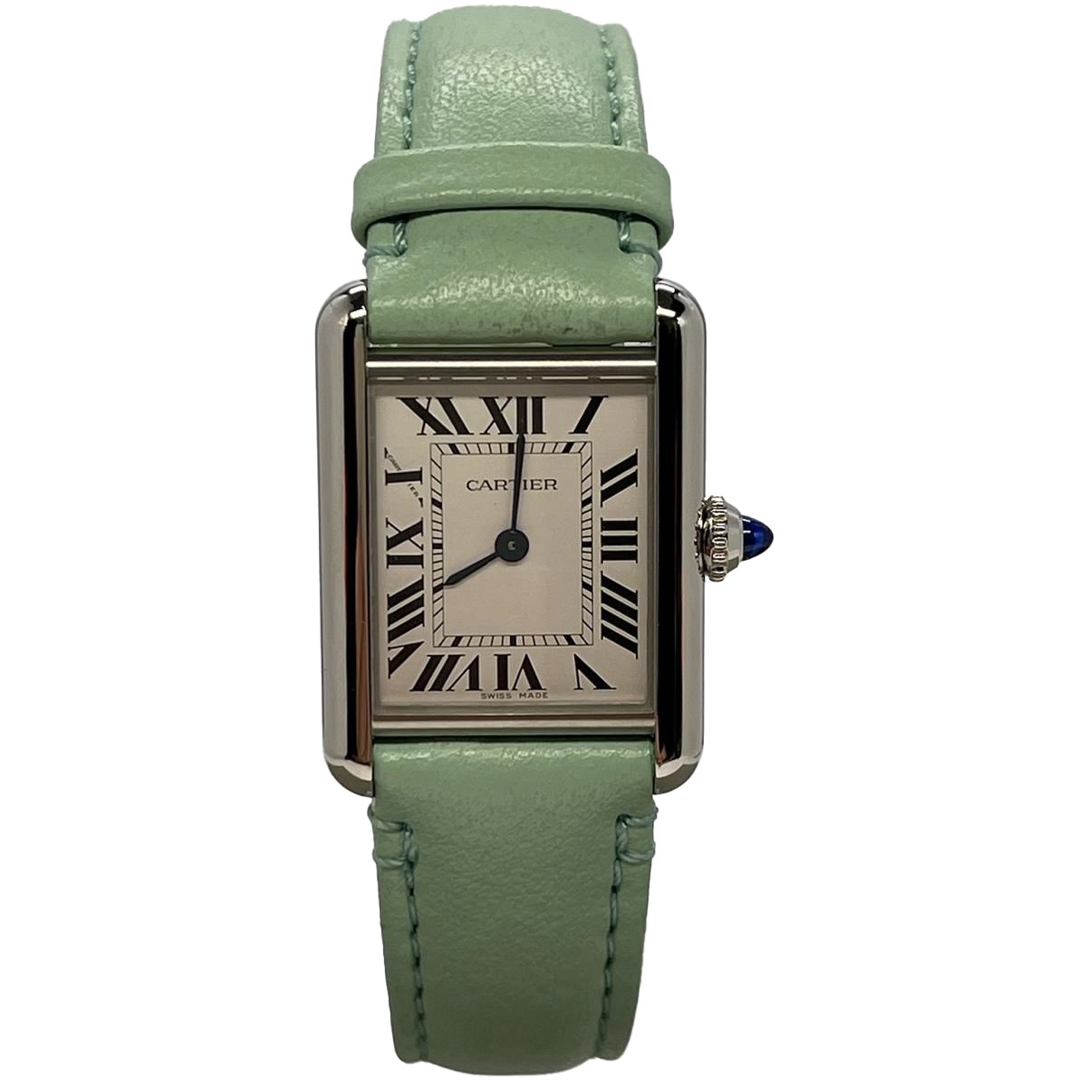 This Cartier Tank Must WSTA0061 has a silver roman numeral dial and a leather strap. This Cartier has undergone a thorough inspection of accuracy, functionality and condition at our Cartier certified service centre to determine the level of reconditioning required to meet our strict standards. It has also been checked against our records to ensure authenticity. All our watches have a 24-month warranty for your peace of mind.