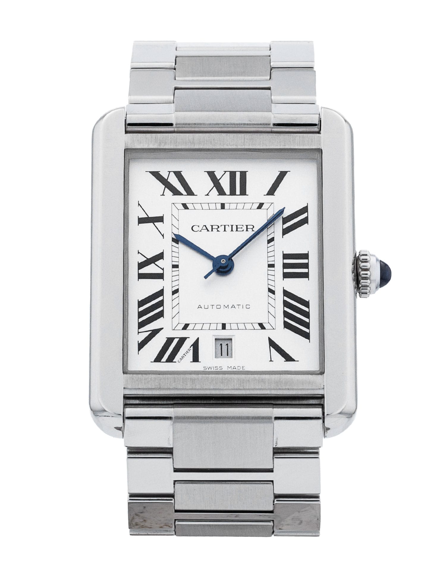 This Cartier Tank Solo W5200028 has a silver roman numeral dial and a bracelet strap. This Cartier has undergone a thorough inspection of accuracy, functionality and condition at our Cartier certified service centre to determine the level of reconditioning required to meet our strict standards. It has also been checked against our records to ensure authenticity. All our watches have a 24-month warranty for your peace of mind.