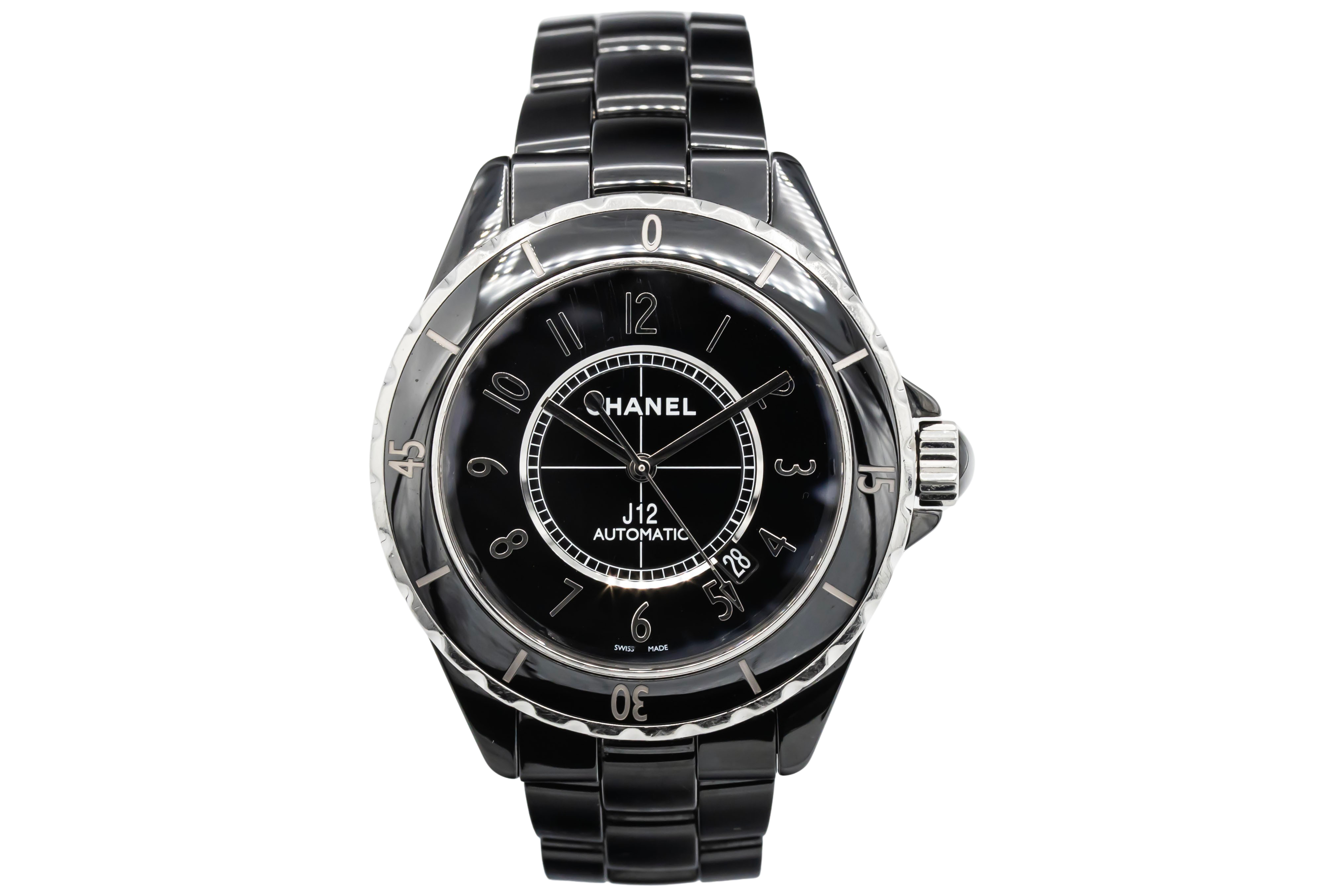 This Chanel J12 H0685 has a black arabic dial and a bracelet strap. This Chanel has undergone a thorough inspection of water resistance, accuracy, functionality and condition to determine the level of reconditioning required to meet our strict standards. It has also been referenced against technical documents and manufacturer records where available to ensure authenticity and a clean history. All our watches have a 24-month warranty for your peace of mind.