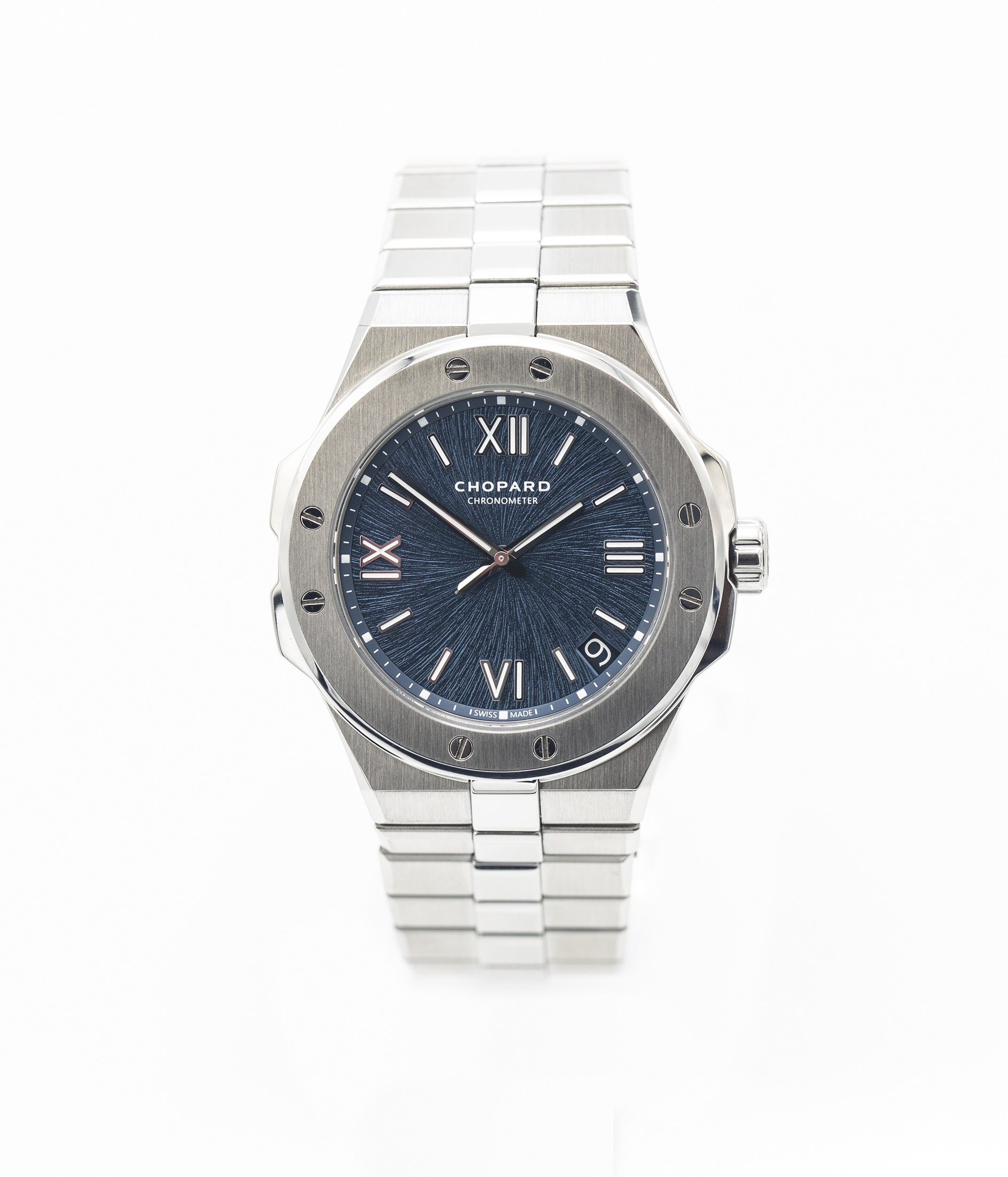 This Chopard Alpine Eagle 298600-3001 has a blue quarter roman numeral dial and a bracelet strap. This Chopard has undergone a thorough inspection of water resistance, accuracy, functionality and condition to determine the level of reconditioning required to meet our strict standards. It has also been referenced against technical documents and manufacturer records where available to ensure authenticity and a clean history. Our watches have a 24-month warranty for your peace of mind, in conjunction with any remaining manufacturer’s warranty from new or from service.