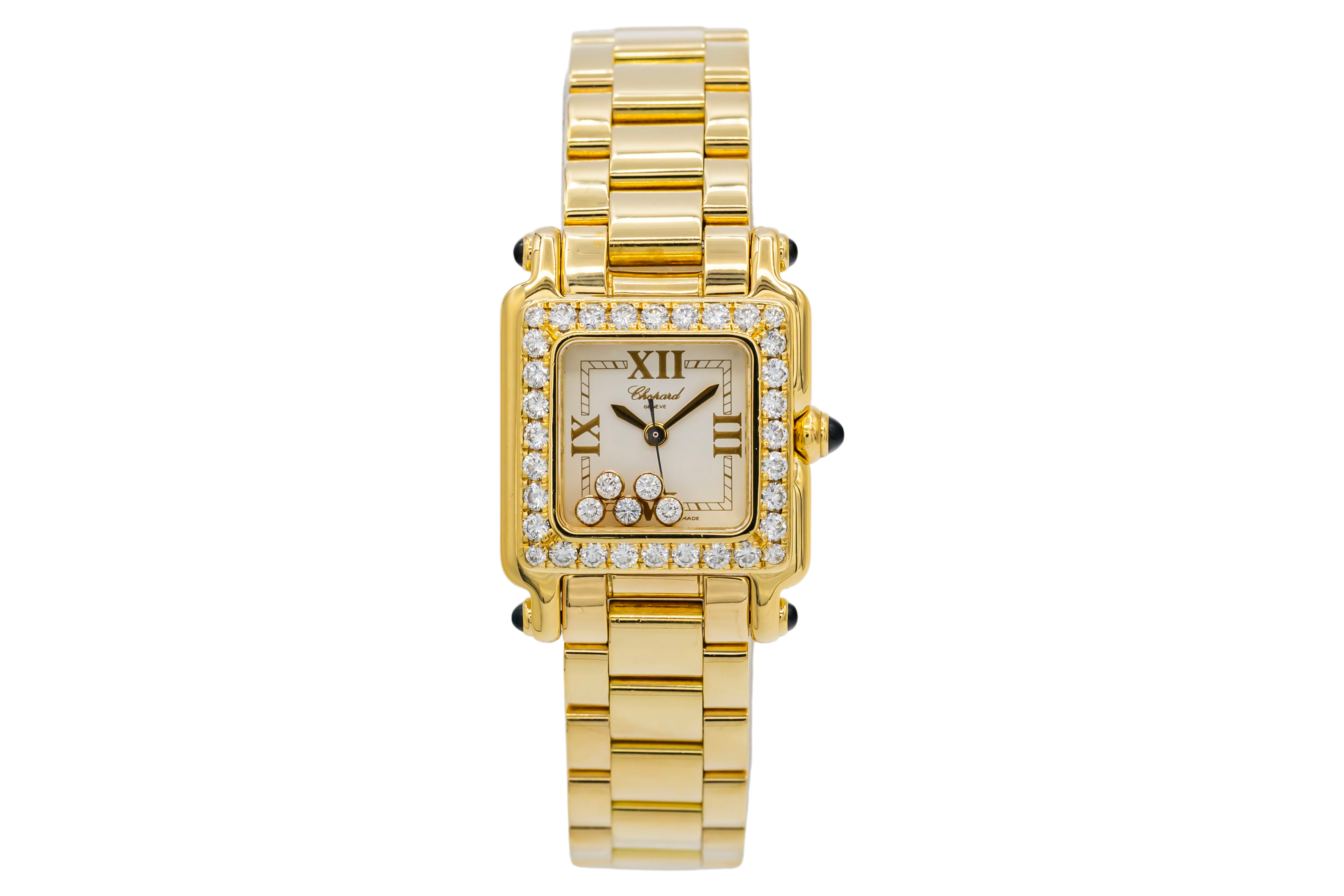 This Chopard Happy Diamonds 276851 has a silver dial and a bracelet strap. This Chopard has undergone a thorough inspection of water resistance, accuracy, functionality and condition to determine the level of reconditioning required to meet our strict standards. It has also been referenced against technical documents and manufacturer records where available to ensure authenticity and a clean history. All our watches have a 24-month warranty for your peace of mind.
