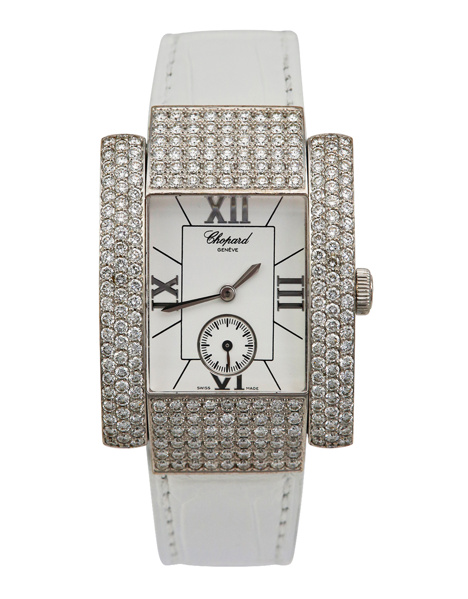 This Chopard La Strada 41/7423-1001 has a white quarter roman numeral dial and a leather strap. This Chopard has undergone a thorough inspection of water resistance, accuracy, functionality and condition to determine the level of reconditioning required to meet our strict standards. It has also been referenced against technical documents and manufacturer records where available to ensure authenticity and a clean history. All our watches have a 24-month warranty for your peace of mind.